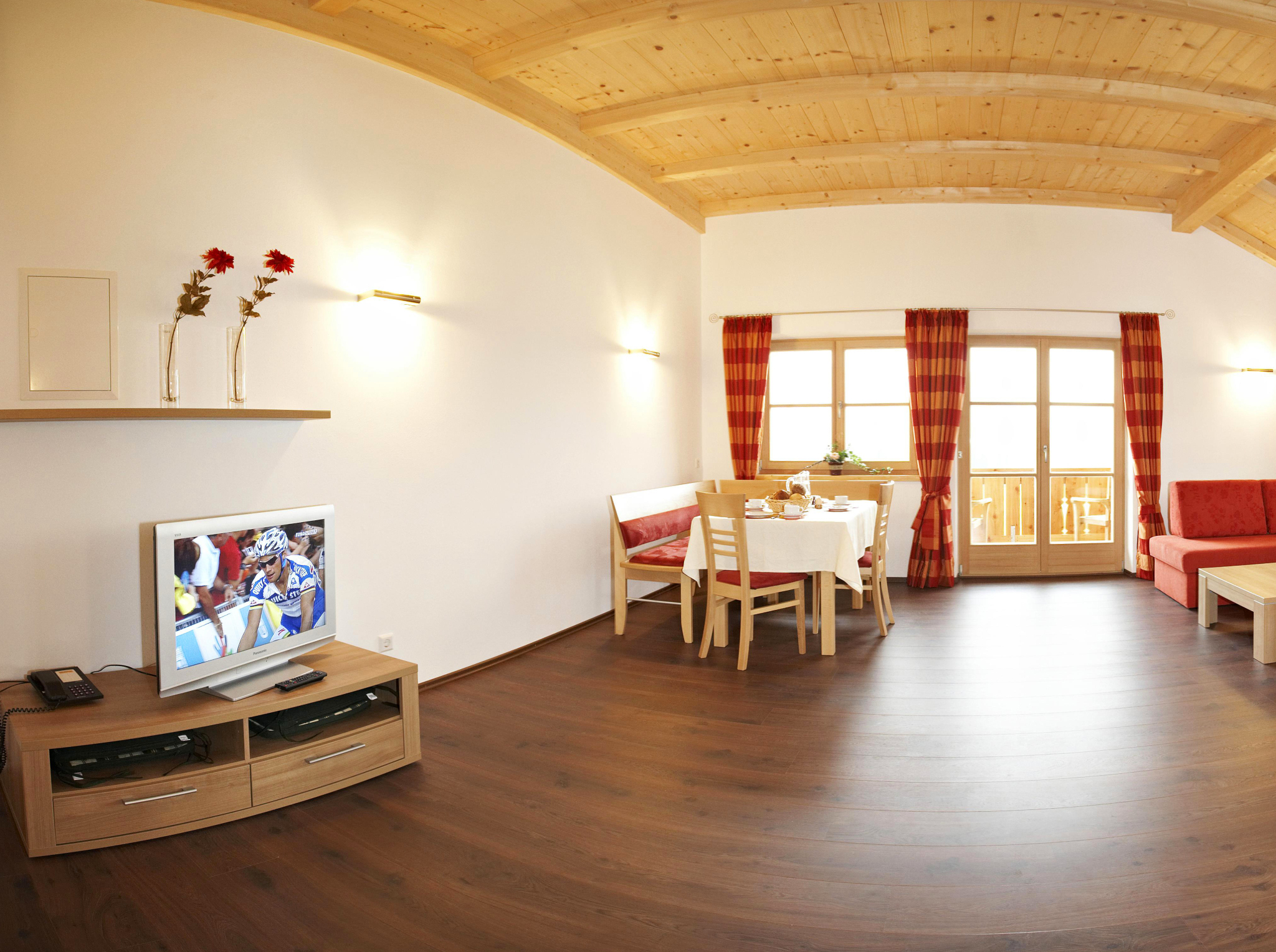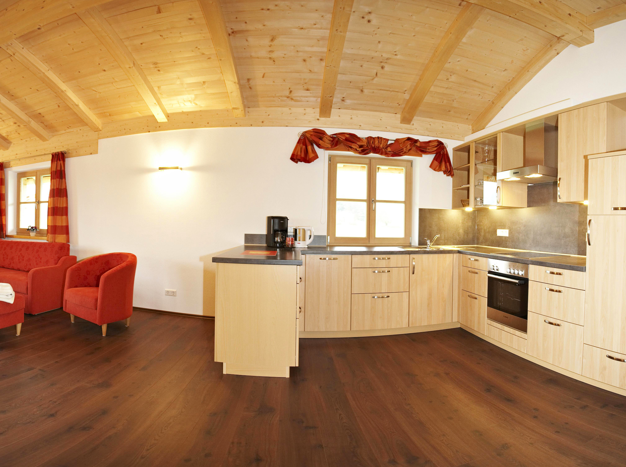 Hier erwartet Sie moderner Komfort in stilvollem Ambiente: handgefertigte Einrichtung aus duftendem Holz, edler Naturstein in den Bädern und urige Deckenbalken schaffen ein urgemütliches Wohnvergnügen.