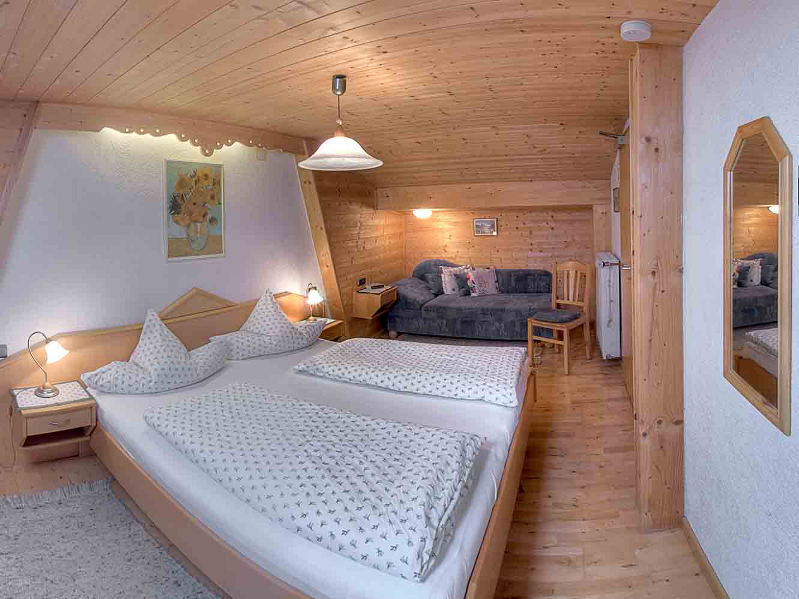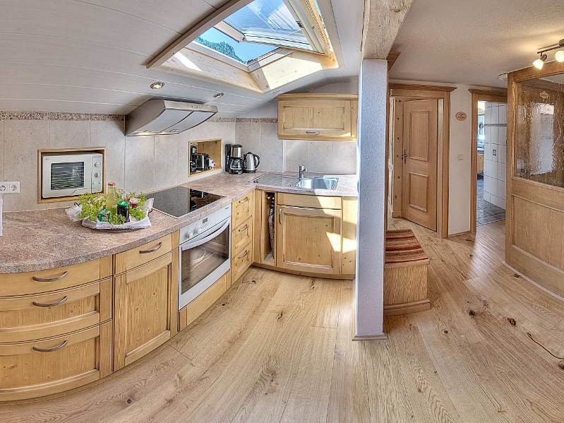 Die Wohnung befindet sich im 2. Stock mit Balkon zur Ostseite. Sie ist sehr gemütlich eingerichtet und hat eine offene sehr gut ausgestattete Küche und Wohnzimmer, 1 großes Bad mit Dusche/WC sowie ein weiteres kleines Bad mit Dusche/WC, ein Schlafzimmer, das mit dem gesundheitsförderndem Zirbenholz eingerichtet ist und ein großes Schlafzimmer mit Couch. Die Fenster in den Schlafzimmern und Bädern sind Dachfenster, die mit Regensensoren ausgestattet und verdunkelbar sind.