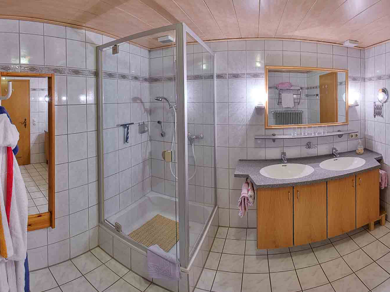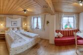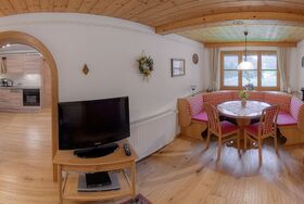 Die Ferienwohnung ist 80 m² groß und befindet sich im 1. Stock mit Balkon zur Südseite. Sie hat eine große, sehr gut eingerichtete Küche und einen Wohnraum mit Blick zur Südseite. Es gibt ein Doppelzimmer zur Südseite mit Waschplatz und ein Doppelzimmer mit großer Bettcouch zur Nordseite. Das Doppelzimmer zur Nordseite ist mit gesundheitsförderndem Zirbenholz ausgestattet. Außerdem gibt es ein großes Bad mit Doppelwaschbecken, begehbarer Dusche und WC. In der Ferienwohnung steht Ihnen noch ein 2. separates WC zur Verfügung. Die zwei Schlafzimmer sind beide verdunkelbar.