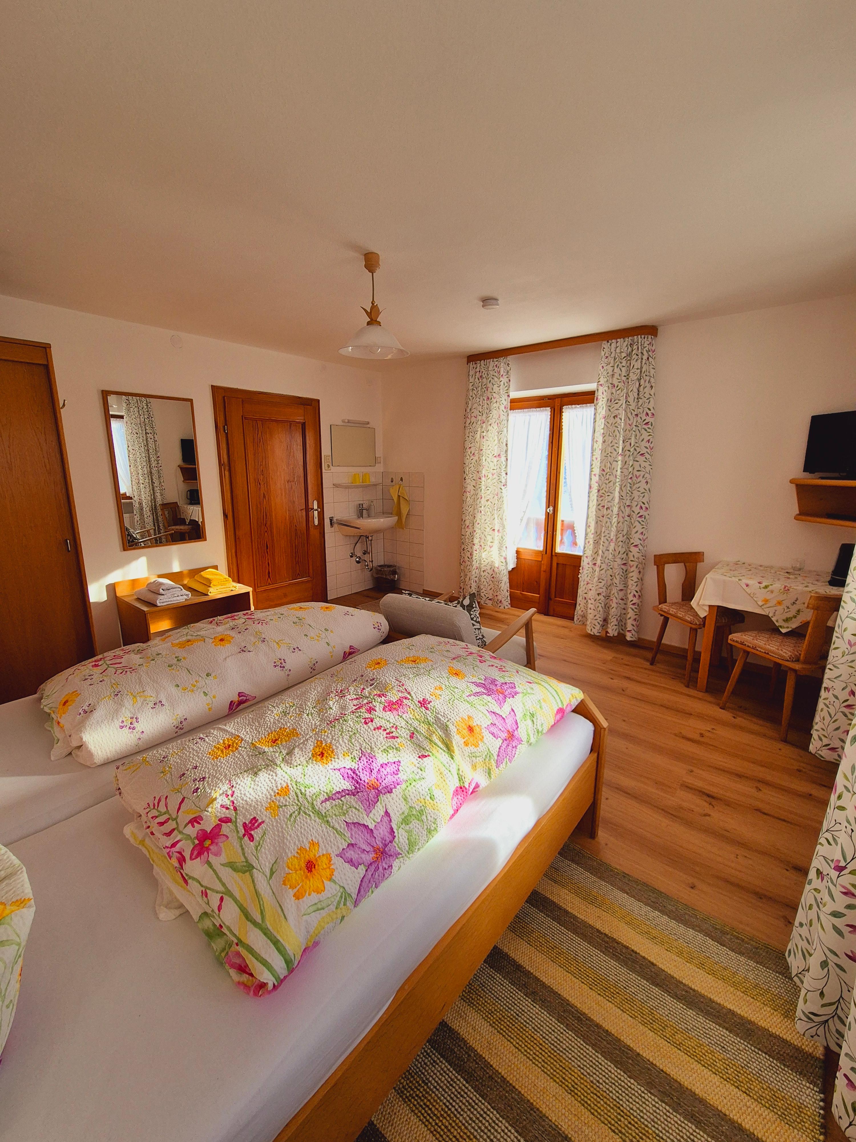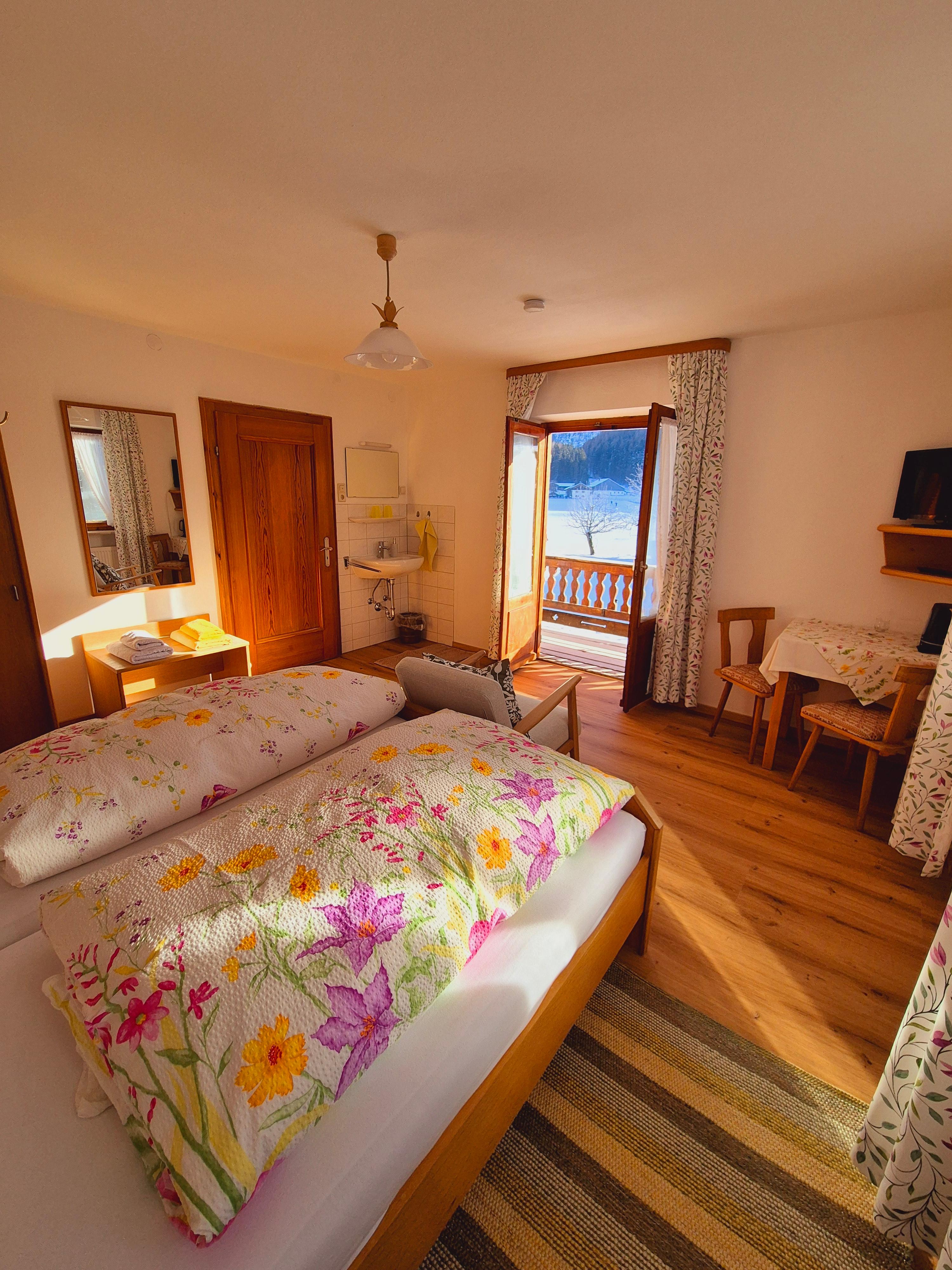 Erleben Sie Ihren Urlaub auf unserem Bauernhof. Zentrale Lage mit herrlichem Bergblick. Alle Zimmer mit Balkon, zum Teil Dusche/WC bzw. Etagendusche. Aufenthaltsraum mit Geschirr zur Kaffee- und Teezubereitung sowie TV. Alle Zimmer mit Kabel-TV, Reichhaltiges Frühstück, Langlaufloipe ab Haus.10 Gehminuten zur Eishalle, Bade- und Kurpark.