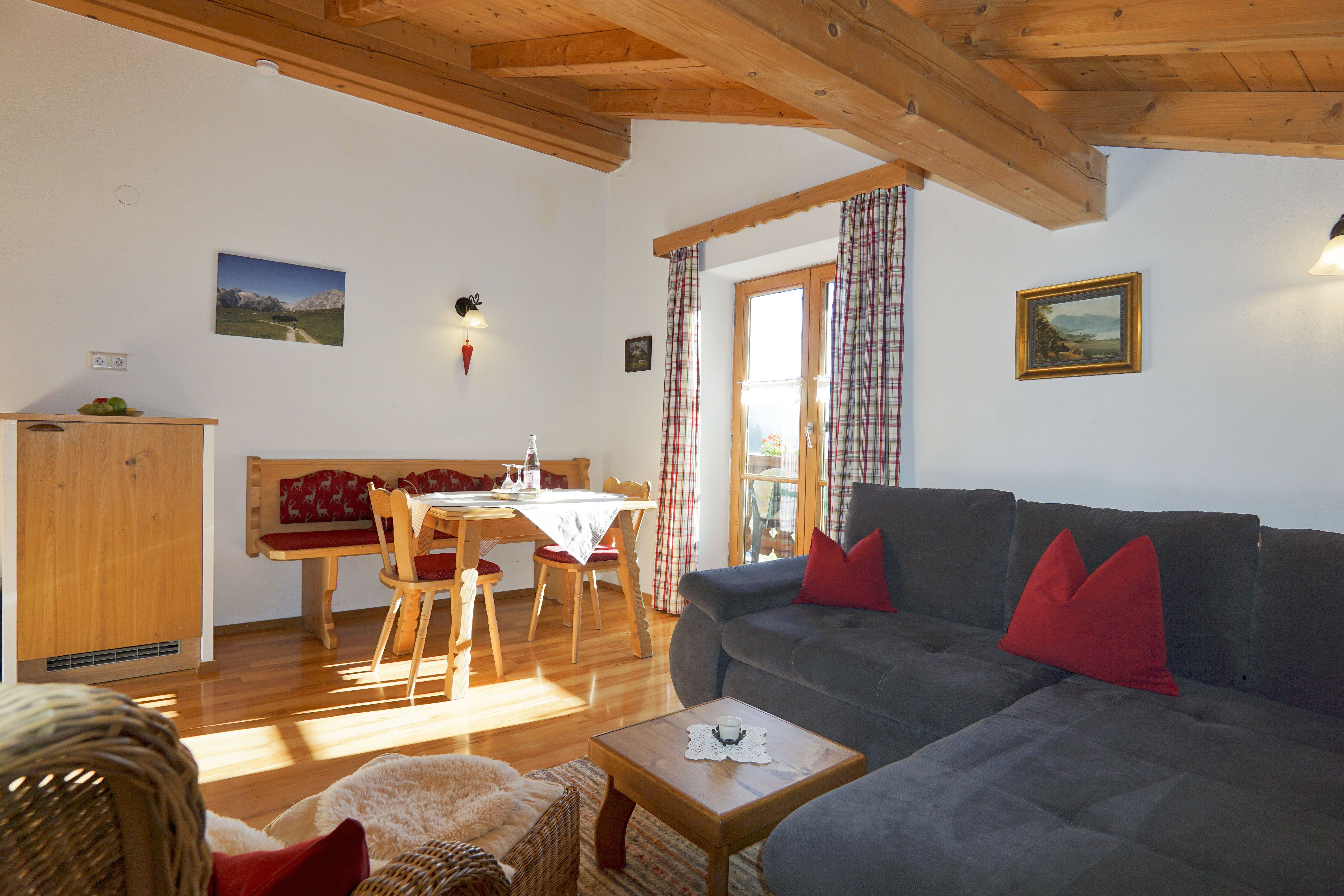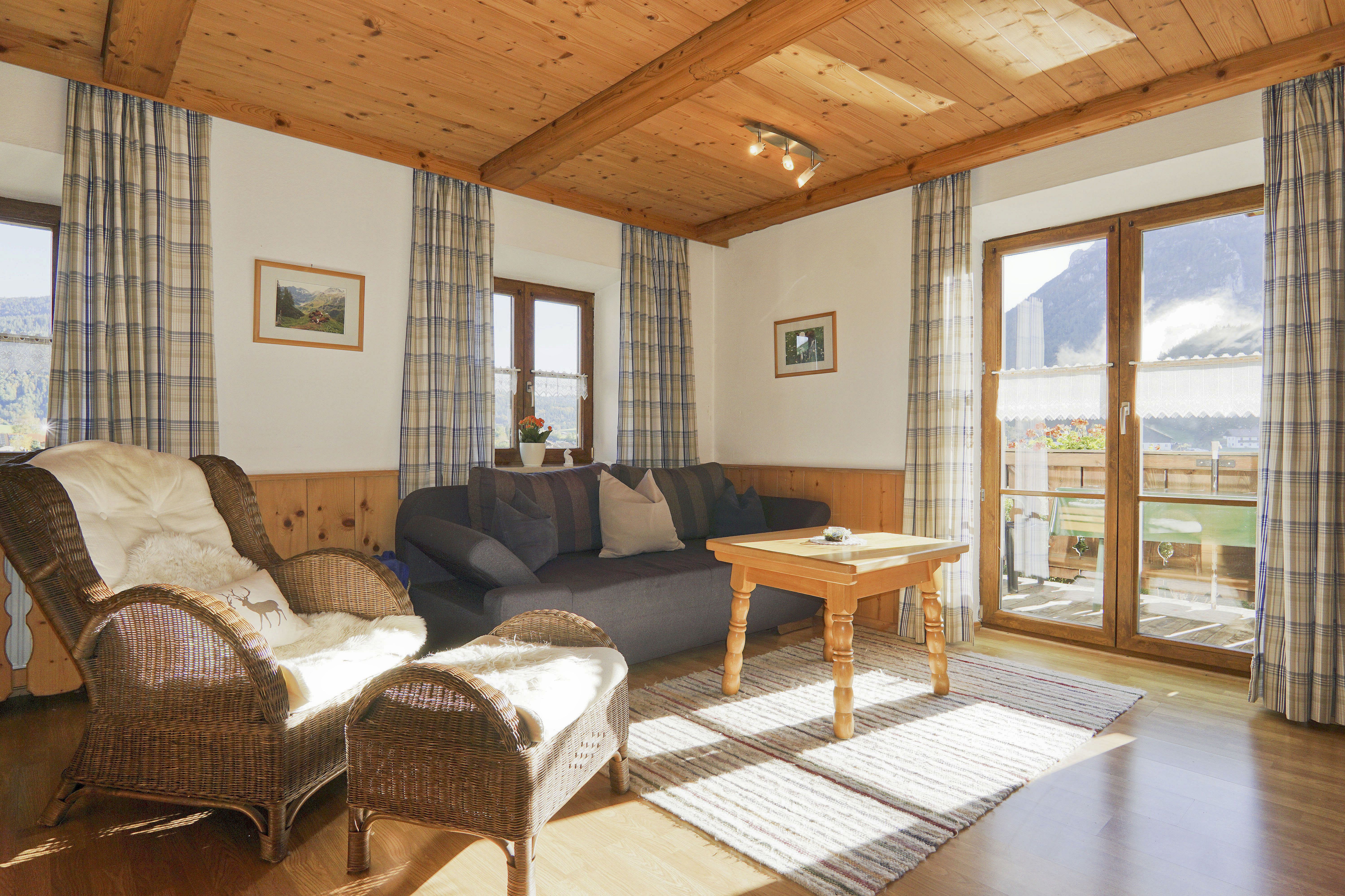 Im Landhausstil eingerichtete Ferienwohnung mit herrlichem Bergblick.