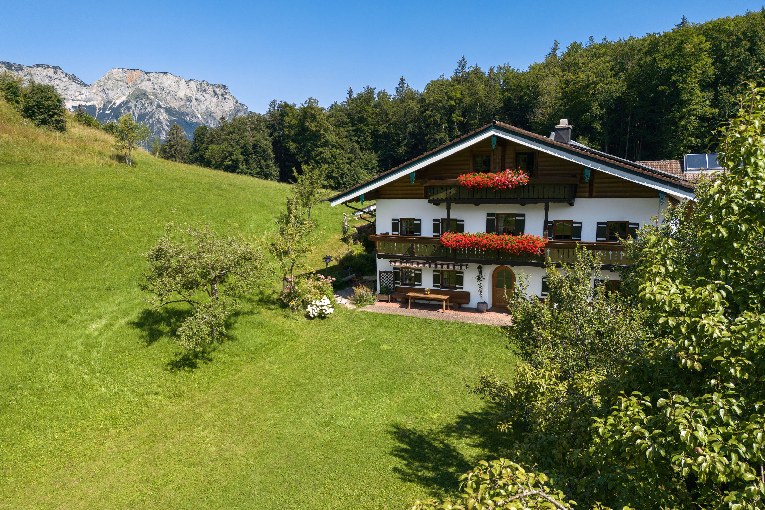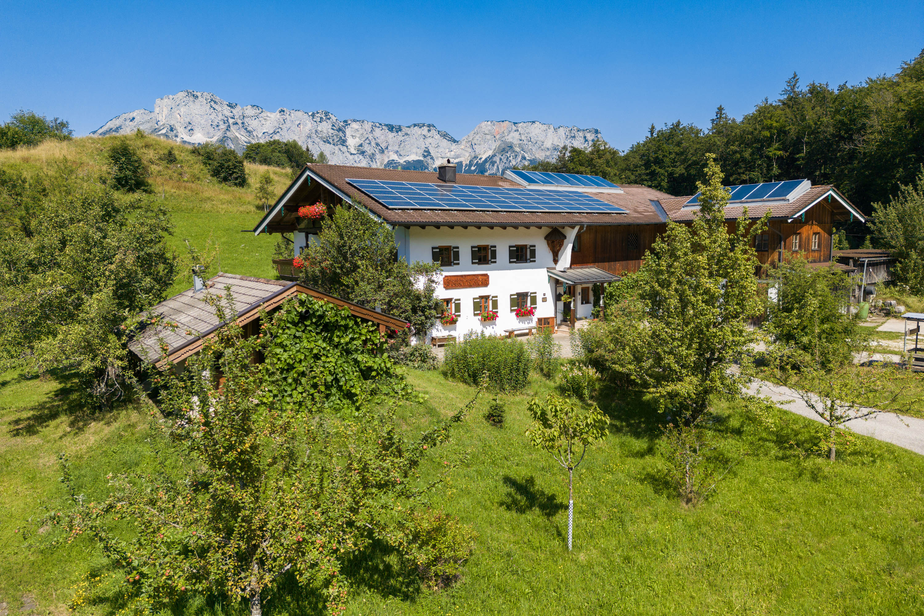 Unser Bauernhof liegt in ruhiger und sonniger Lage auf 700 m ü. NN. in der wunderschönen Scheffau zwischen Berchtesgaden mit Salzbergwerk, Watzmanntherme und seinen zahlreichen Wirtshäusern und der Mozartstadt Salzburg.Ein Kinderspielplatz mit Sandkasten, Spielhütte und Schaukeln und die Nähe zu unseren Tieren (Kühe, Hühner, Kaninchen, Katze) lassen Kinderherzen höher schlagen. Für die Eltern lädt der Balkon mit Bergpanorama oder unsere Liegewiese zum Entspannen ein. Im Winter sind das Skigebiet Roßfeld und die Langlaufloipe Scheffau für sportliche Aktivitäten in nächster Nähe.