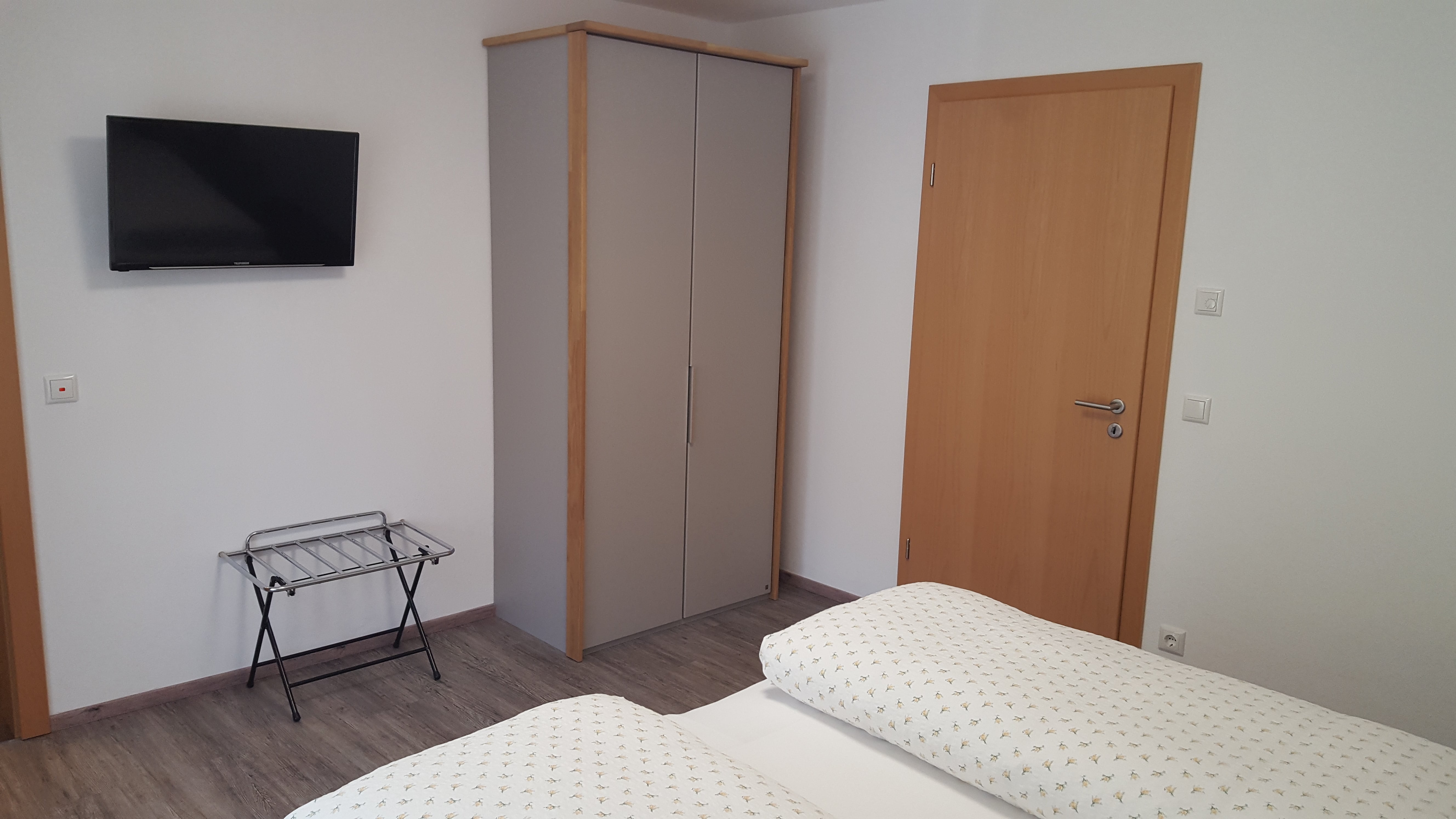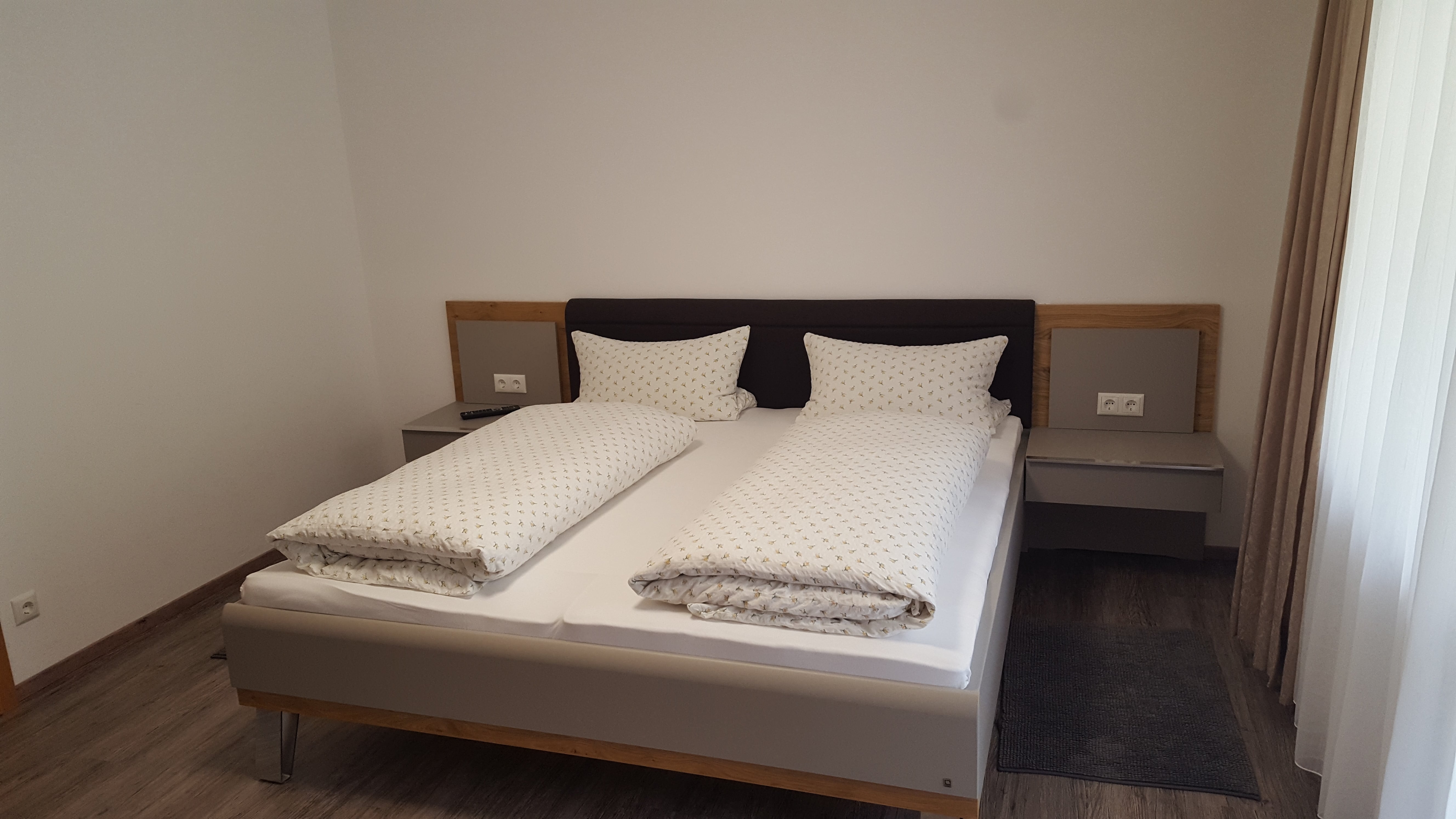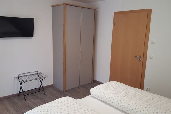 Unsere neu renovierte Nichtraucher-Ferienwohnung bietet Platz auf ca. 50 qm und ist ausgestattet mit Fußbodenheizung, einem separaten Schlafzimmer mit SAT-TV, einer offenen Küche (Backofen, Spülmaschine, Kaffeemaschine, Wasserkocher, Mikrowelle, Kühlschrank mit Tiefkühlfach) und Wohnzimmer mit Ess- und Sitzecke, SAT-TV, WLAN und einem Bad mit Dusche/WC. Auf den zwei möblierten Balkonen genießen Sie die Ruhe.