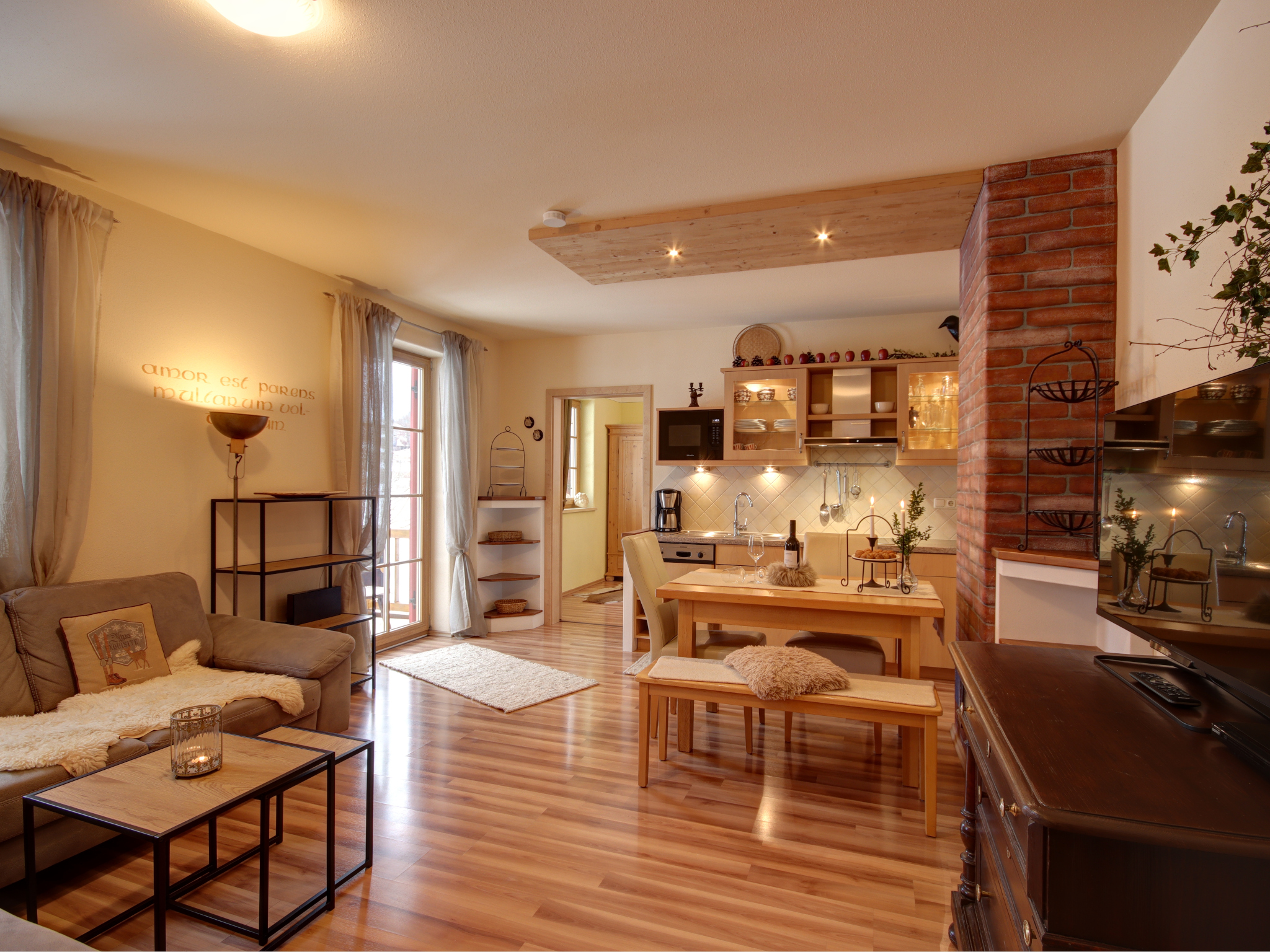 „Dem Leben mehr Leben schenken“ – Unser 5 Sterne Haus ist geprägt durch stilvolles Ambiente mit herrlichem Blick auf die heimische Bergwelt. In den beiden Ferienwohnungen haben wir mediterranes Flair mit alpiner Lebens-Art vereint; zudem sind sie komfortabel ausgestattet. Schön entspannen können Sie im Wellnessbereich mit Leseraum, Ruhezone, Duschgrotte und Kneipp. Besonders die Sauna mit Sternenhimmel ist ein Erlebnis. Ein großzügiger, reizvoll bepflanzter Gästegarten mit lauschigen Sitzplätzen lädt zum Verweilen ein. Rad- und Wanderwege sowie Loipen führen am Haus vorbei. Massageangebot auf Anfrage. Reservierter Carport kostenlos für Sie. Wir heißen Sie herzlich willkommen.