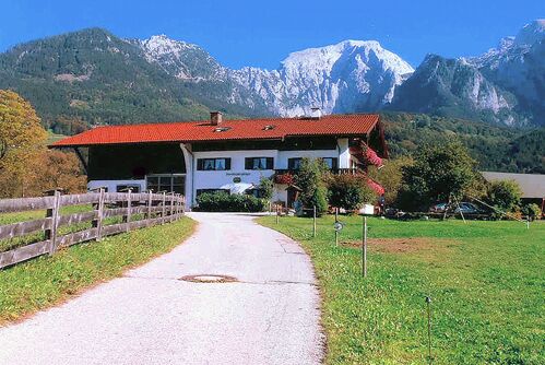 Umringt von herrlichen Bergen und weiten Wiesen, mitten im Berchtesgadener Tal, liegt unser sonniger und ruhiger Bauernhof. Familienfreundliche Erholungsmöglichkeiten bieten wir unseren kleinen und großen Gästen abseits vom Durchgangsverkehr. Wenn Sie Ruhe und Erholung suchen und dabei die Natur hautnah genießen wollen, dann ist Ihr Urlaub bei uns genau das Richtige. Komfortable Zimmer - alle mit Dusche und WC, CD-Radio, SAT-Fernsehen, zum Teil mit Balkon. Aufenthaltsraum mit Kachelofen und SAT-Fernseher. Für Ruhe und Entspannung sorgt eine große Liegewiese und Terrasse mit Liegestühlen und verschiedenen Sitzgruppen. Für unsere kleinen Gäste haben wir einen Spielplatz. Es erwartet Sie ein abwechslungsreiches Frühstück. Gaststätte und Wanderwege sind in unmittlbarer Nähe. Unseren Gästen steht kostenloses WLAN zur Verfügung.