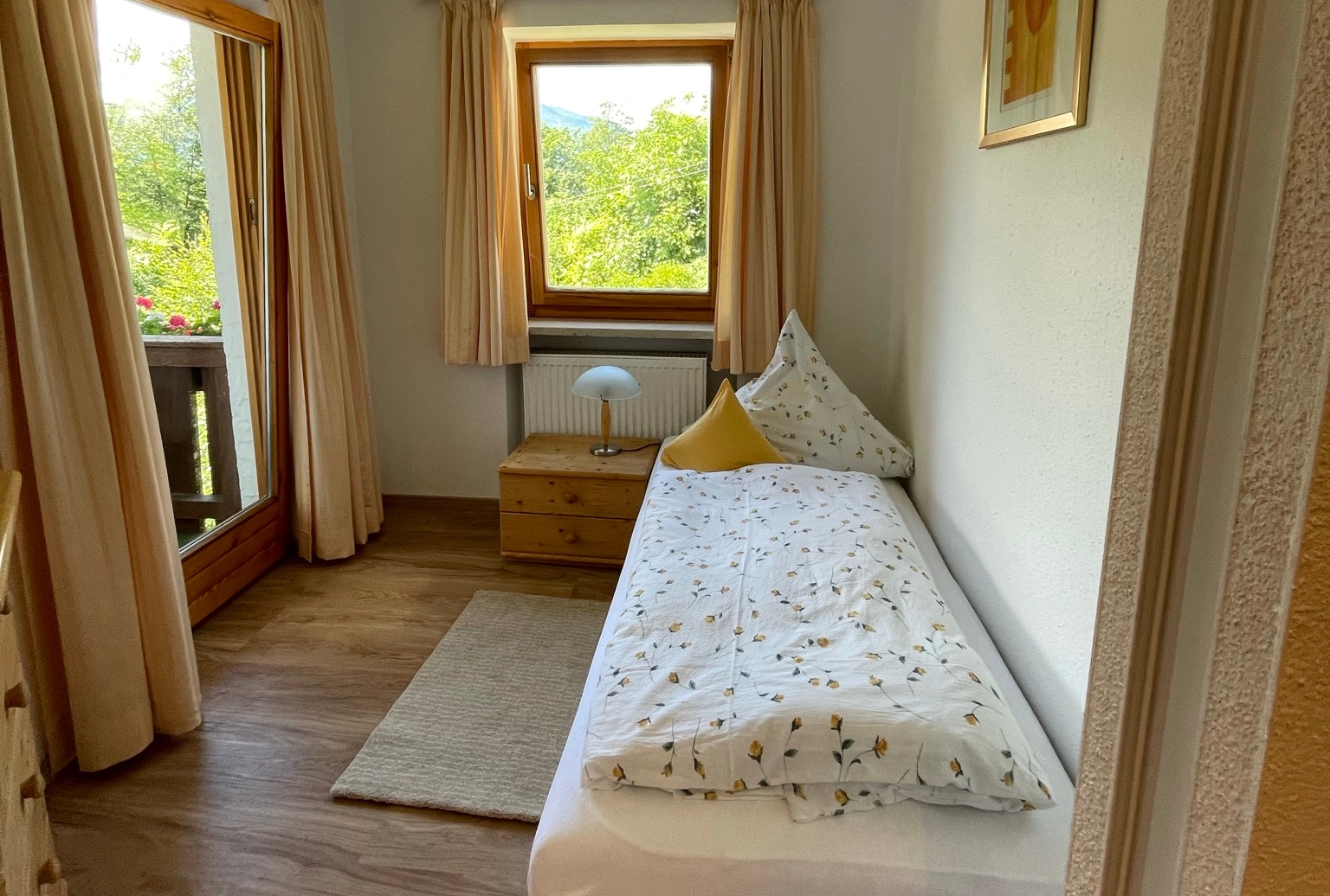 In der Ferienwohnung Nr.3 befinden sich zwei Schlafzimmer. Von der Balkon aus können Sie einen tollen Blick in das umliegende Bergpanorama genießen. Gerne stellen wir Ihnen einen kostenlosen Parkplatz, direkt vor dem Haus, zur Verfügung.