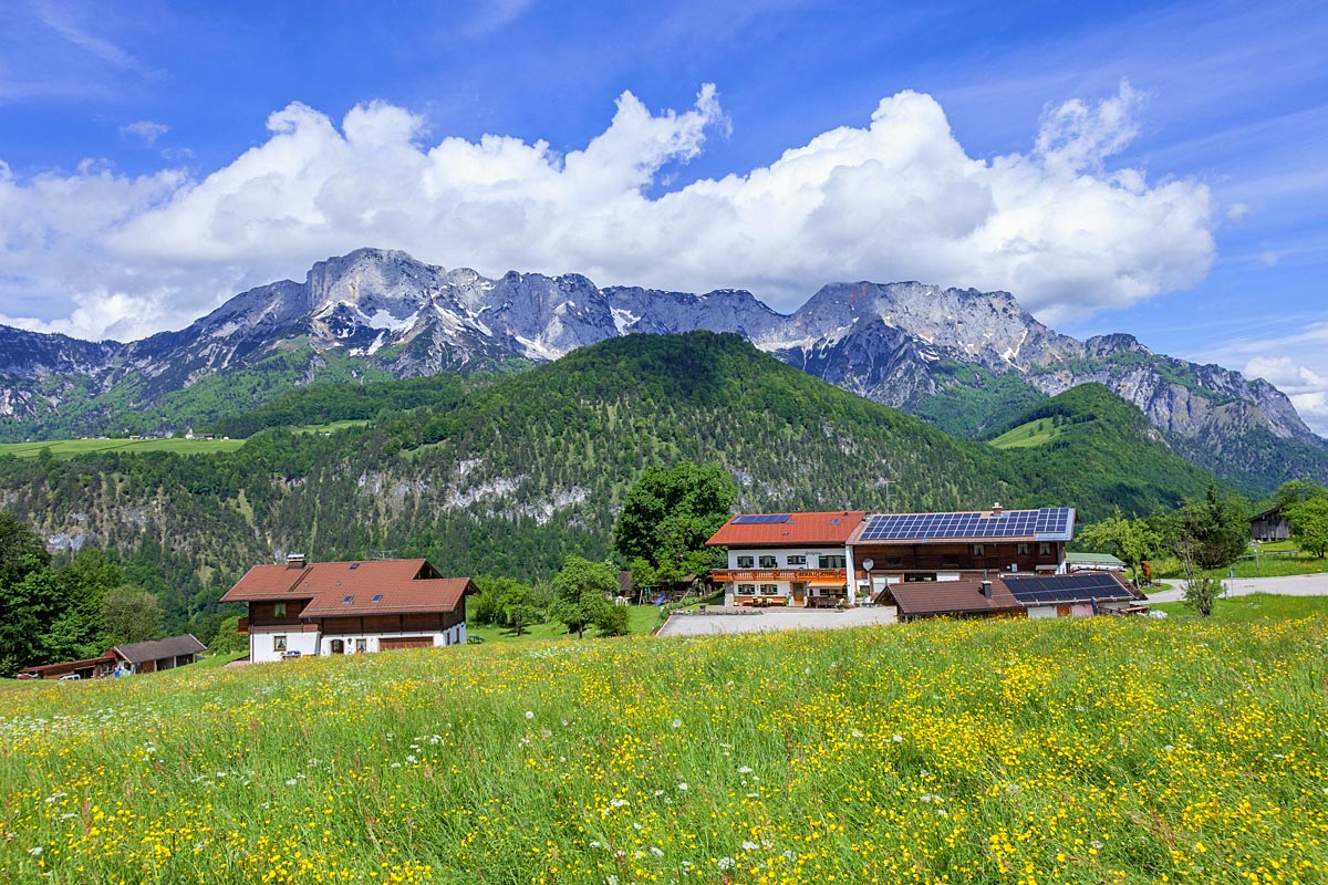 Erleben Sie die schönsten Tage des Jahres mit Ihrer Familie auf einem Bauernhof in den Berchtesgadener Alpen. Im Steinlehen finden Sie Ruhe, Erholung und Entspannung vom hektischen Alltag in familiärer Atmosphäre. Genießen Sie einen atemberaubenden Blick auf die bayerischen Berge. Unser großer Garten mit herrlichem Bergblick auf die Berchtesgadener Berge lädt zum Sonnenbaden und Faulenzen ein. Der Spielplatz am Waldrand mit Spielgeräten und Streicheltieren lässt bei Kindern garantiert keine Langeweile aufkommen. Unser bewirtschafteter Hof liegt im malerischen Marktschellenberg zwischen Berchtesgaden und Salzburg. Der Urlaubsort bietet Ihnen abwechslungsreiche Möglichkeiten, um den wohlverdienten Urlaub aktiv und erlebnisreich zu gestalten. Und das zu jeder Jahreszeit. Wir würden uns sehr freuen, Sie demnächst in unserem Haus als Gäste begrüßen zu dürfen. Ihre Familie Fuchs