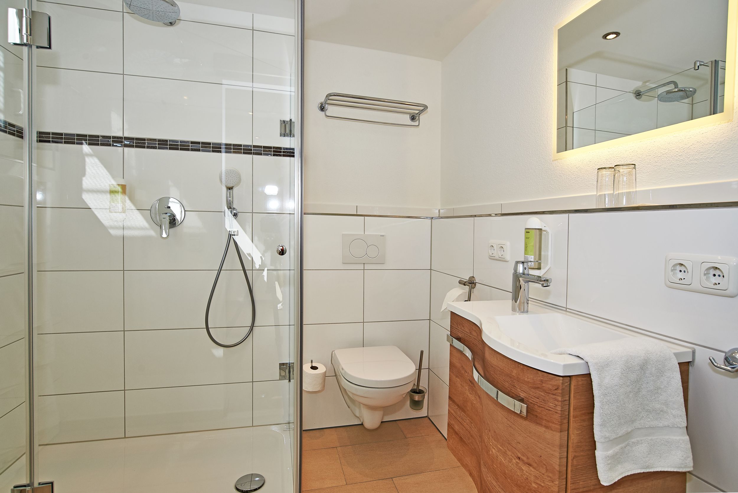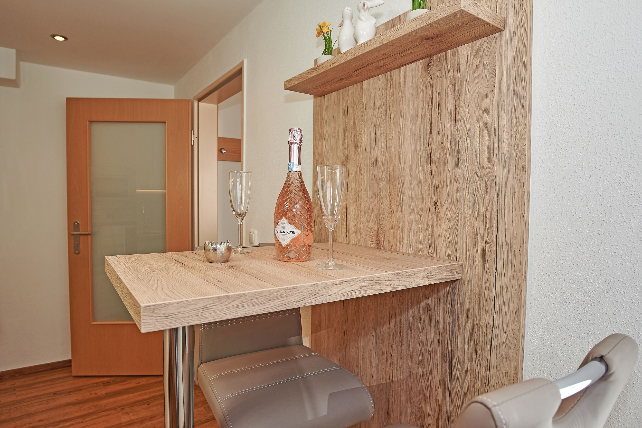 Im Winter 2022 wurde dieses moderne Ferienappartement mit Terrasse neu gestaltetet und bietet Platz für 2 Personen. Es eignet sich für Allergiker und ist mit Parkettböden ausgestattet. Unsere Dreizimmerwohnung verfügt über eine vollausgestattete Küche mit großem Kühlschrank/Gefrierfach, Mikrowelle, Backofen, Ceranfeld, Kaffeemaschine, Küchenutensilien, Geschirrspülmaschine und Spüle. Eine Kaffeebar mit 2 Barstühlen (höhenverstellbar) laden zum Morgenkaffee ein. Ein großzügiges Wohnzimmer mit Esstisch, 4 Stühlen und gemütlicher Ausziehcouch mit Tisch, sowie Elektrokamin (beheizbar) sorgen für Ihr Wohlgefühl. Ein LCD Flachbild DVBT -TV und eine Micro Stereoanlage bieten gute Unterhaltung, Safe und Infomappe stehen zur Verfügung. Das separate Schlafzimmer mit Doppelbett je 180 x 200 cm, Bettwäsche und Kommode und Schrank verfügt ebenfalls über einen LCD-Flachbild, Radiowecker, Bettwäsche, Schlummerkissen, Kuscheldecke. Ein großzügiges Badezimmer mit Dusche/WC, Handtücher, Haartrockner, Kosmetikspiegel, Handtuchwärmer, Pflegeprodukte runden diese Wohnung ab. Sie verfügt über einen eigenen Eingang mit großzügiger Garderobe. Kostenloses W-Lan steht selbstverständlich zur Verfügung. Die Terrasse ist bestuhlt und mit Tisch/ Liegen und Sonnenschirm ausgestattet. Ein Staubsauger befindet sich ebenfalls in der Wohnung.Gerne können Sie auch unseren täglichen Brötchenservice gegen Gebühr in Anspruch nehmen. Das Appartement ist nur wochenweise buchbar, Anreise am Sonntag - kürzere Zeiträume nur auf Anfrage! Babybetten/Hochstühle sind zu buchbar.Bitte beachten Sie, dass wir keine Tiere in unserem Haus aufnehmen.Wir empfehlen Ihnen den Abschluss einer Reiserücktrittsversicherung! Bis dato geleistete Anzahlungen erstatten wir mit einem generellen Abzug von 25,00 € Bearbeitungsgebühr.
