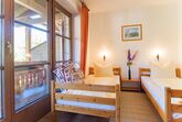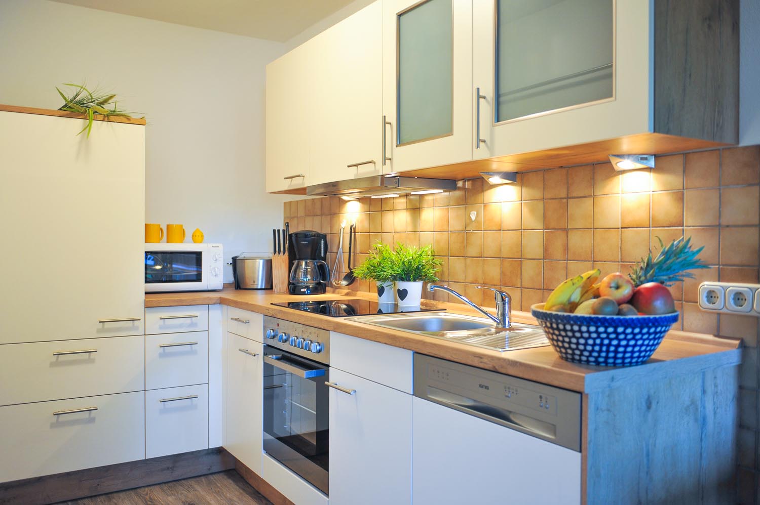 Diese komfortable und geschmackvoll eingerichtete 3-Sterne Wohnung befindet sich im ersten Obergeschoss in einem Haus mit insgesamt 8 Ferienwohnungen. Auf ca 80 qm Wohnfläche finden Sie alles was zu einem schönen Urlaub gehört. Ihre Wohnung verfügt über einen geschmackvoll eingerichteten Wohnraum für gemütliche Abende, vom Wohnzimmer aus haben Sie einen direkten Zugang zu Ihrem Balkon, eine Wohnküche mit einer Küchenzeile und Essraum, ein separates Eltern-Schlafzimmer mit einem Doppelbett (180 x 200cm) und einem 3-türigen Kleiderschrank, auch vom Schlafzimmer aus haben Sie einen direkten Zugang zu Ihrem Balkon, ein zweites Schlafzimmer mit einem Stockbett (90 x 200cm) und ein Badezimmer mit einem Badewanne mit Dusche und WC sowie einen Balkon mit Süd-Westblick, komfortablen Gartenmöbeln und Sonnenschirm.