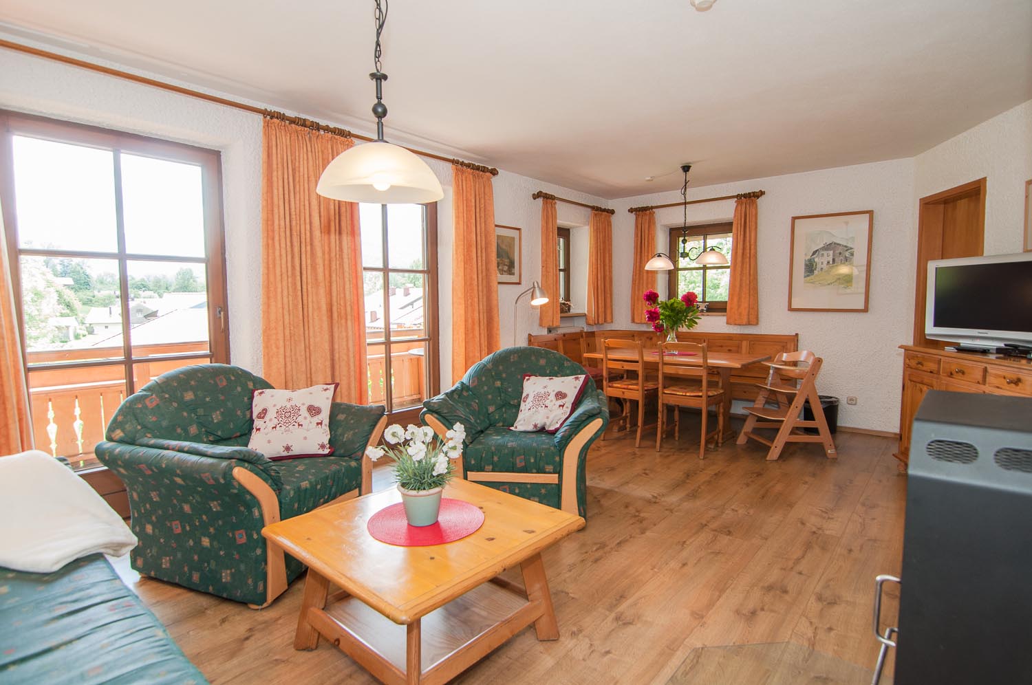 Das malerische Dorf Ruhpolding liegt in einem sehr schönen Tal und eignet sich optimal für Freizeitgestaltung mit der ganzen Familie, sowohl im Sommer wie auch im Winter. Der richtige Platz für den besonderen Urlaub. Unser Haus bietet drei luxuriös und zweckmässig eingerichtete Ferienwohnungen mit 3 Sternen und fünf Ferienwohnungen mit 4 Sternen. Die meisten Wohnungen haben 2 getrennte Schlafzimmer und einen Holzofenkamin im Wohnzimmer. Alle Wohnungen haben eine eigene Terrasse oder einen eigenen Balkon. Im Souterrain befinden sich eine Waschmaschine, Trockner, Bügelbrett, Sauna, Solarium und Tischtennisplatte. Eigener Parkplatz direkt vor dem Haus! Gute Restaurant m. Brötchenservice, ein Reiterhof, Wellenhallenbad, Golf, Tennis, Angeln, Minigolf, schöne Wanderwege und vieles mehr in nächster Nähe. Ausflugsziele in der Nähe: Reit im Winkl (20 km), Chiemsee (25 km), Salzburg (40 km). Ausgezeichnete Badessen für die ganze Familie in ca. 15 km Entfernung.
