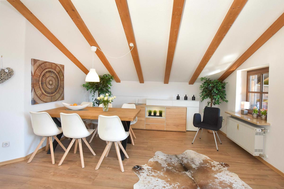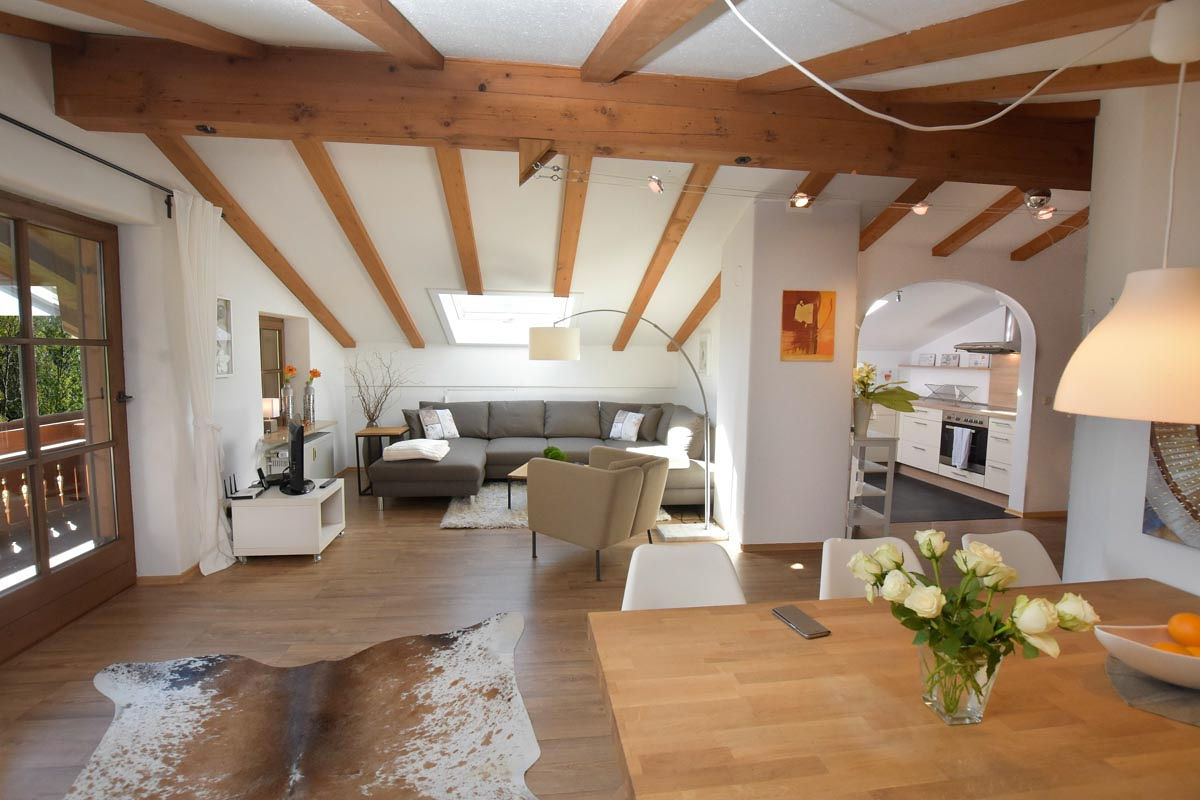 Das malerische Dorf Ruhpolding liegt in einem sehr schönen Tal und eignet sich optimal für Freizeitgestaltung mit der ganzen Familie, sowohl im Sommer wie auch im Winter. Der richtige Platz für den besonderen Urlaub. Unser Haus bietet drei luxuriös und zweckmässig eingerichtete Ferienwohnungen mit 3 Sternen und fünf Ferienwohnungen mit 4 Sternen. Die meisten Wohnungen haben 2 getrennte Schlafzimmer und einen Holzofenkamin im Wohnzimmer. Alle Wohnungen haben eine eigene Terrasse oder einen eigenen Balkon. Im Souterrain befinden sich eine Waschmaschine, Trockner, Bügelbrett, Sauna, Solarium und Tischtennisplatte. Eigener Parkplatz direkt vor dem Haus! Gute Restaurant m. Brötchenservice, ein Reiterhof, Wellenhallenbad, Golf, Tennis, Angeln, Minigolf, schöne Wanderwege und vieles mehr in nächster Nähe. Ausflugsziele in der Nähe: Reit im Winkl (20 km), Chiemsee (25 km), Salzburg (40 km). Ausgezeichnete Badessen für die ganze Familie in ca. 15 km Entfernung.
