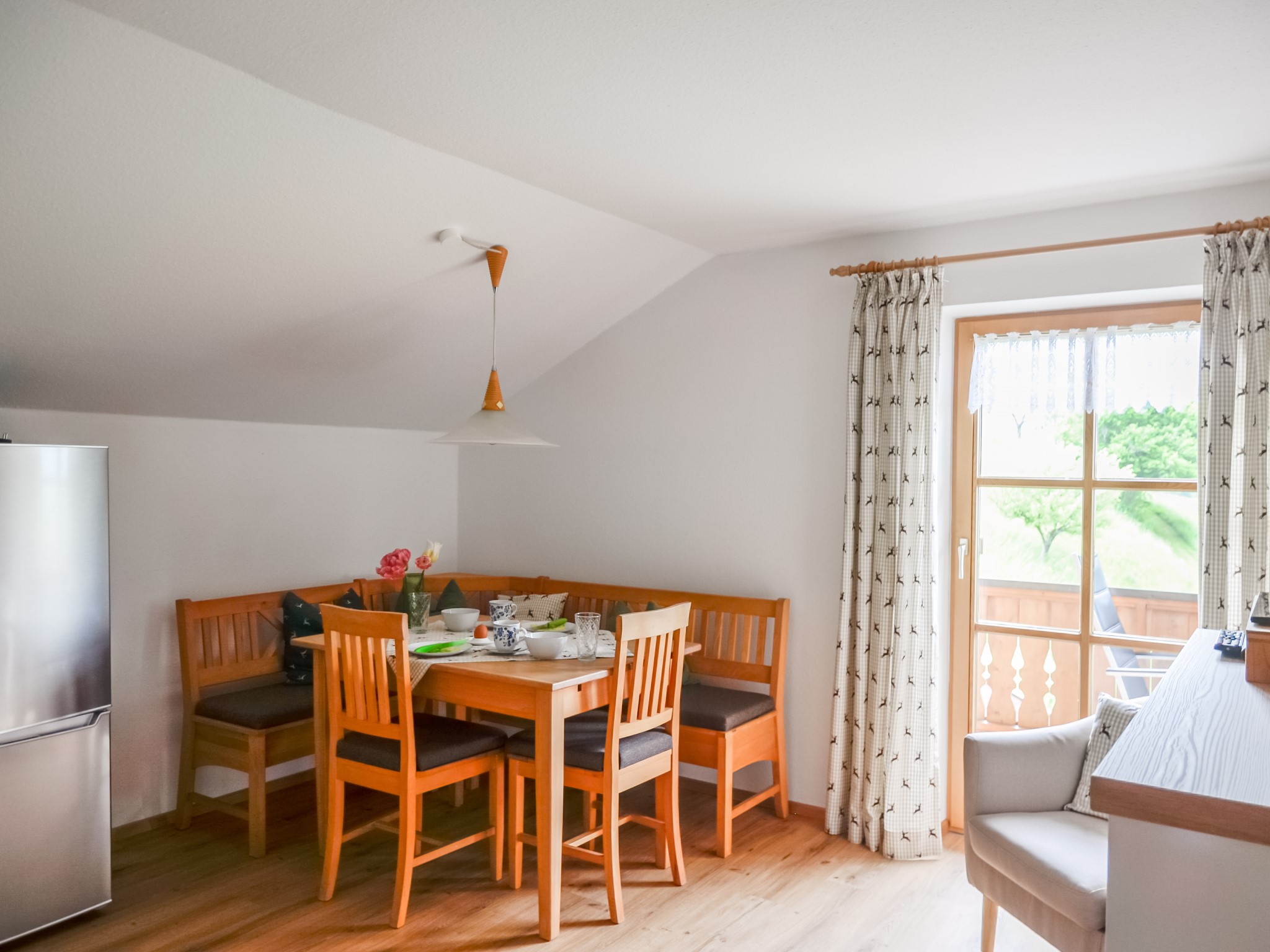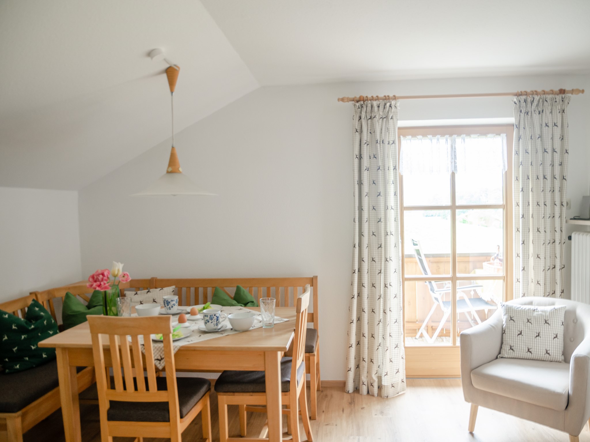 Die helle, gemütliche im typischen Landhausstil eingerichtete Ferienwohnung ist ideal um Ihren Urlaub zu genießen. Mit herrlichem Blick auf die Reichenhaller Bergwelt können Sie schon in der Morgensonne Ihr Frühstück am Balkon genießen. Unsere Wohnküche ist gut ausgestattet. Sie finden darin eine gemütliche Eckbank und SAT-TV, Balkon zum Wohlfühlen. Die Wohnung ist ideal für Familien bis zu 5 Personen, da Sie über zwei große, getrennte Schlafzimmer mit Doppelbetten verfügt. Ein Zustellbett für die 5. Person ist in den geräumigen Schlafzimmern kein Problem. Idealer Ausgangspunkt für Wanderungen, Bademöglichkeit im Natursee Thumsee (ca. 15 Minuten Fußweg). Ideal für Familien und Gäste die die Ruhe der Natur lieben.