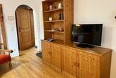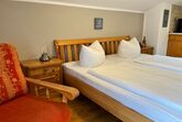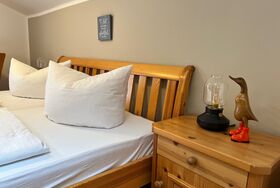 Die komfortable Nichtraucher-Ferienwohnung bietet Platz auf 33 qm und liegt im Dachgeschoß. Der kombinierte Wohn-Schlafraum ist ausgestattet mit einem Doppelbett, 2 Sesseln, Essbereich mit Eckbank, einer komplett eingerichteten kleinen Küchenzeile und Bad mit Badewanne/WC. Radio, TV und WLAN stehen ebenso zur Verfügung wie ein möblierter Süd-Balkon. In der Wohnung ist aufgrund der Größe nur 1 Hund als Begleitung erlaubt.