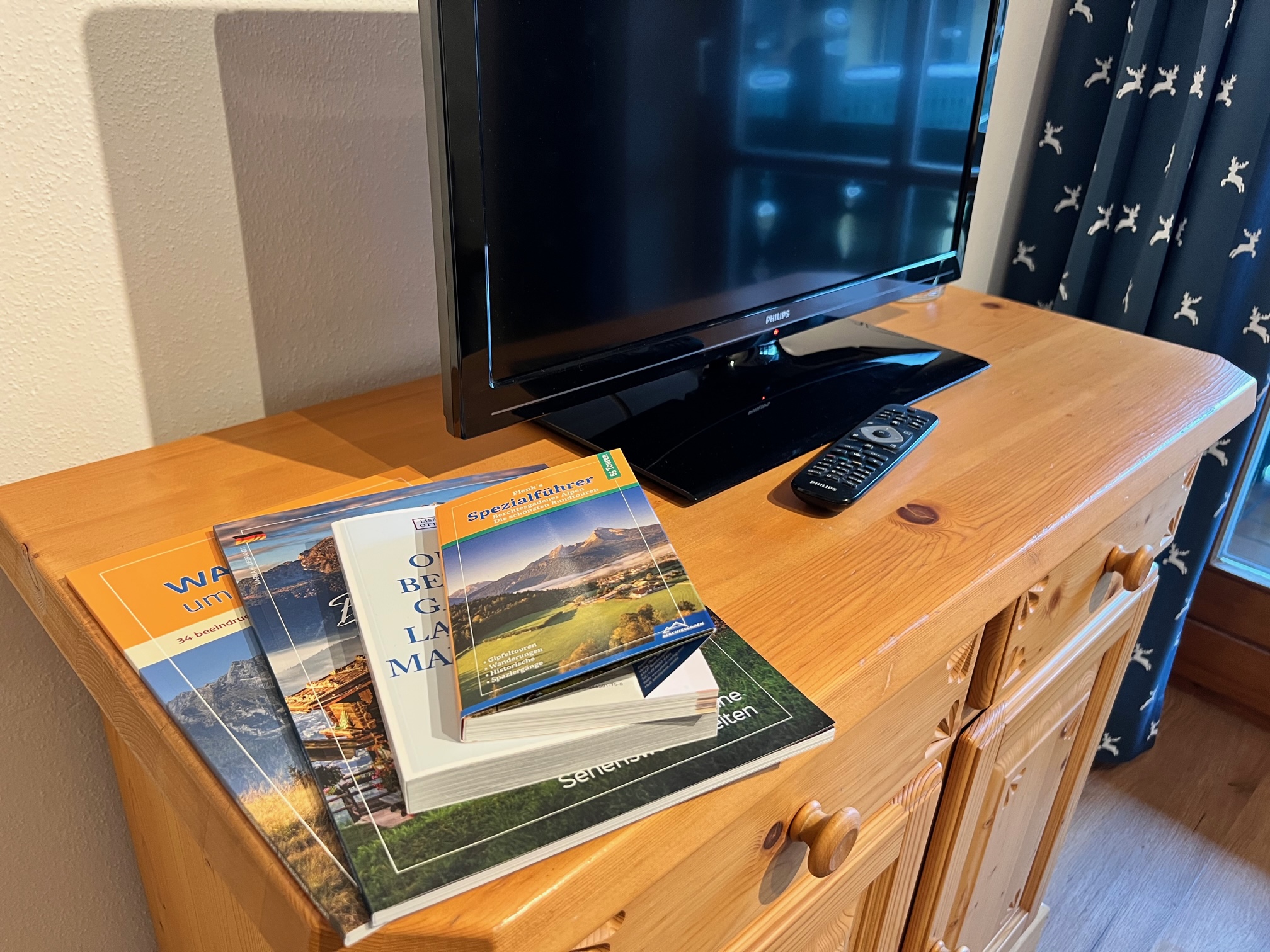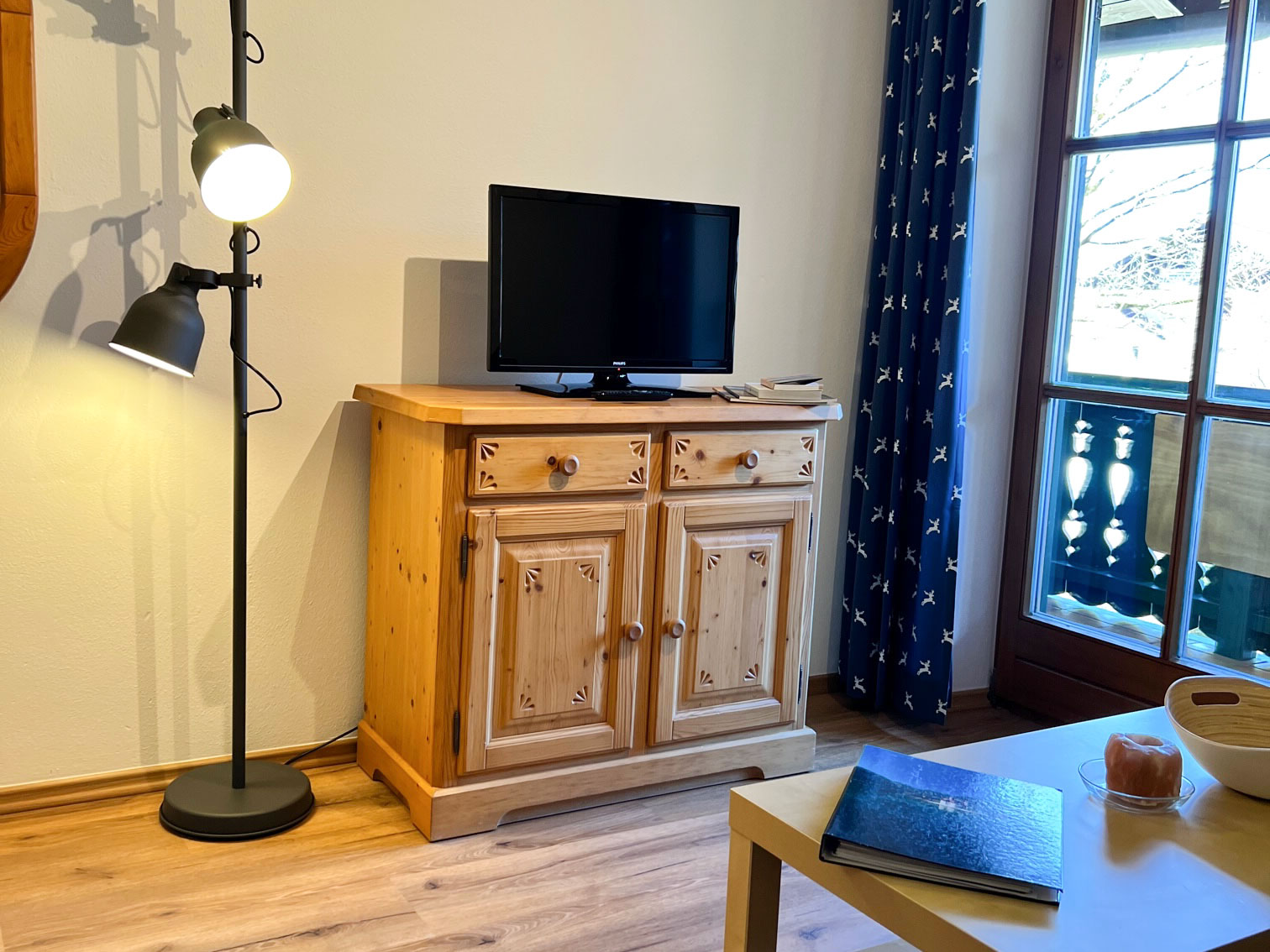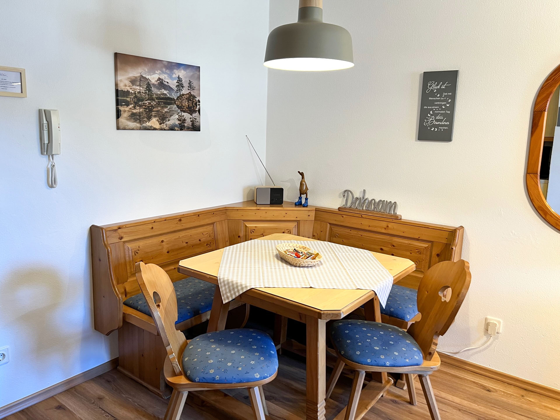 Die gemütlich eingerichtete Nichtraucher-Ferienwohnung bietet Platz auf 35 qm und liegt im 1. Obergeschoß. Sie ist ausgestattet mit einem separaten Schlafzimmer mit Doppelbett, einem Wohnzimmer mit Sofa, Radio, TV, WLAN, Essbereich mit Eckbank, sowie einer komplett eingerichteten kleinen Küchenzeile. Im Bad stehen Dusche und WC zur Verfügung. Auf dem möblierten Balkon haben sie einen wunderbaren Bergblick. Auch Ihre Haustiere sind bei uns herzlich willkommen.