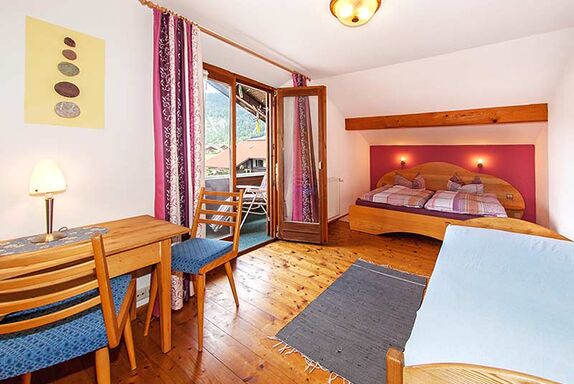 Große liebevoll eingerichtete 3– Raum Dachwohnung mit eigener Etage, 2 getrennte Schlafzimmer und 2 Balkone mit herrlichem Ausblick in die Berge.