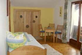 Diese charmante 1-Raumwohnung mit Terrasse und eigenem Eingang ist der perfekte Ort für Paare oder kleine Familien, die eine ganz besondere Atmosphäre suchen. Der offene Wohn-Schlafraum mit gemütlicher Eckbank, Kabel-TV und dem Schwedenofen (Brennholz auf Anfrage) schafft eine behagliche Stimmung. Hier können Sie den Tag in aller Ruhe beginnen oder bei einem gemütlichen Abend mit Blick auf den Garten ausklingen lassen. Das Doppelbett im Schlafbereich und die zusätzliche Schlafgelegenheit bieten Ihnen den Raum, den Sie brauchen. Das Badezimmer ist mit Dusche, WC und Fön ausgestattet, damit Sie sich frisch und erfrischt fühlen können. Die Terrasse mit Gartenmöbeln ist ein kleines Paradies für sich – hier können Sie den Tag in der Natur genießen.