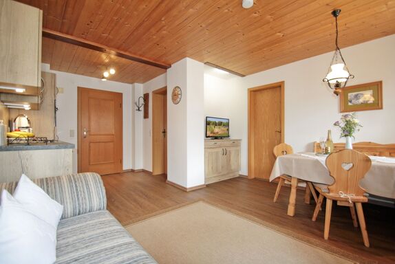 Gästehaus Beim Drucker - Chiemgau Karte - Ferienwohnung Falkenstein 2 Pers., 39 qm, Südbalkon, Wohnküche, 1 Schlafzimmer