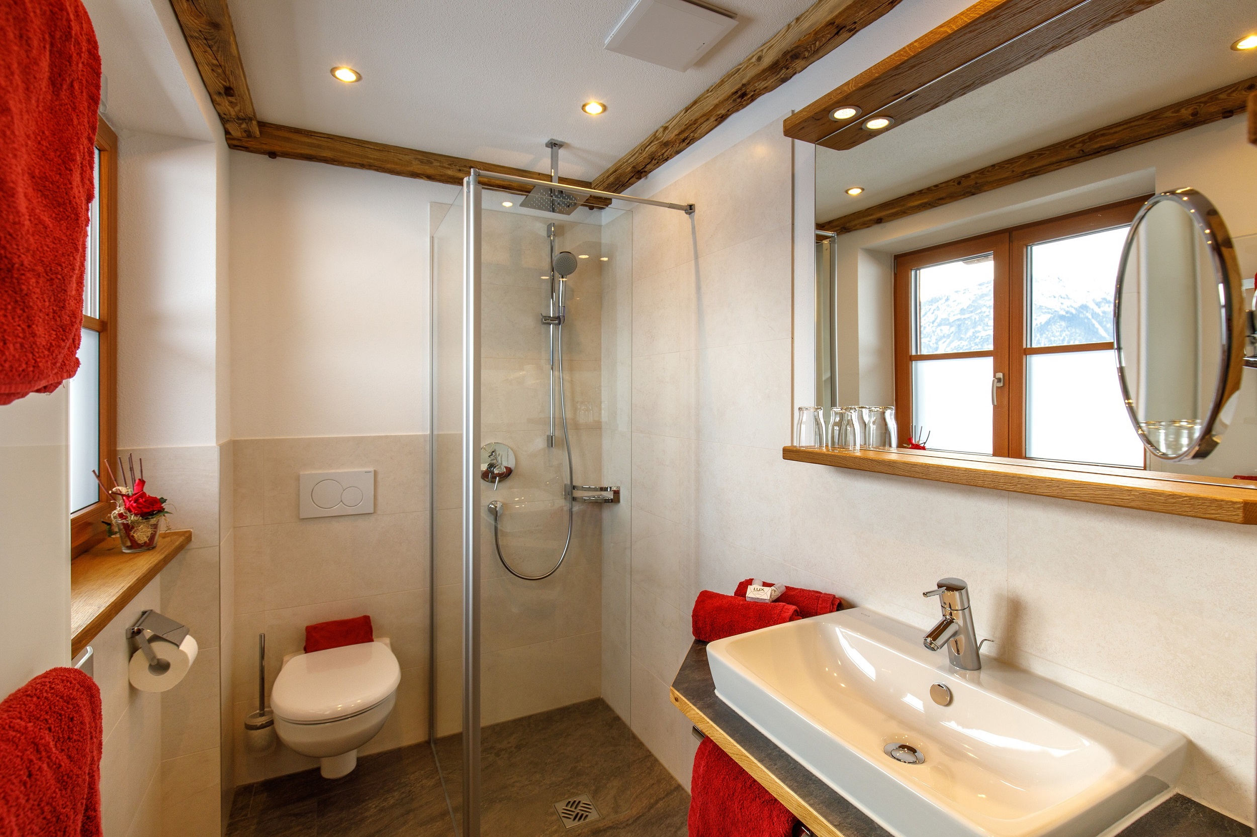 Gemütliches, kleines Doppelzimmer mit Talblick verfügt über einen Eckbalkon, Sitzgelegenheit, Holzboden und neu renoviertem Bad mit ebenerdiger Dusche.