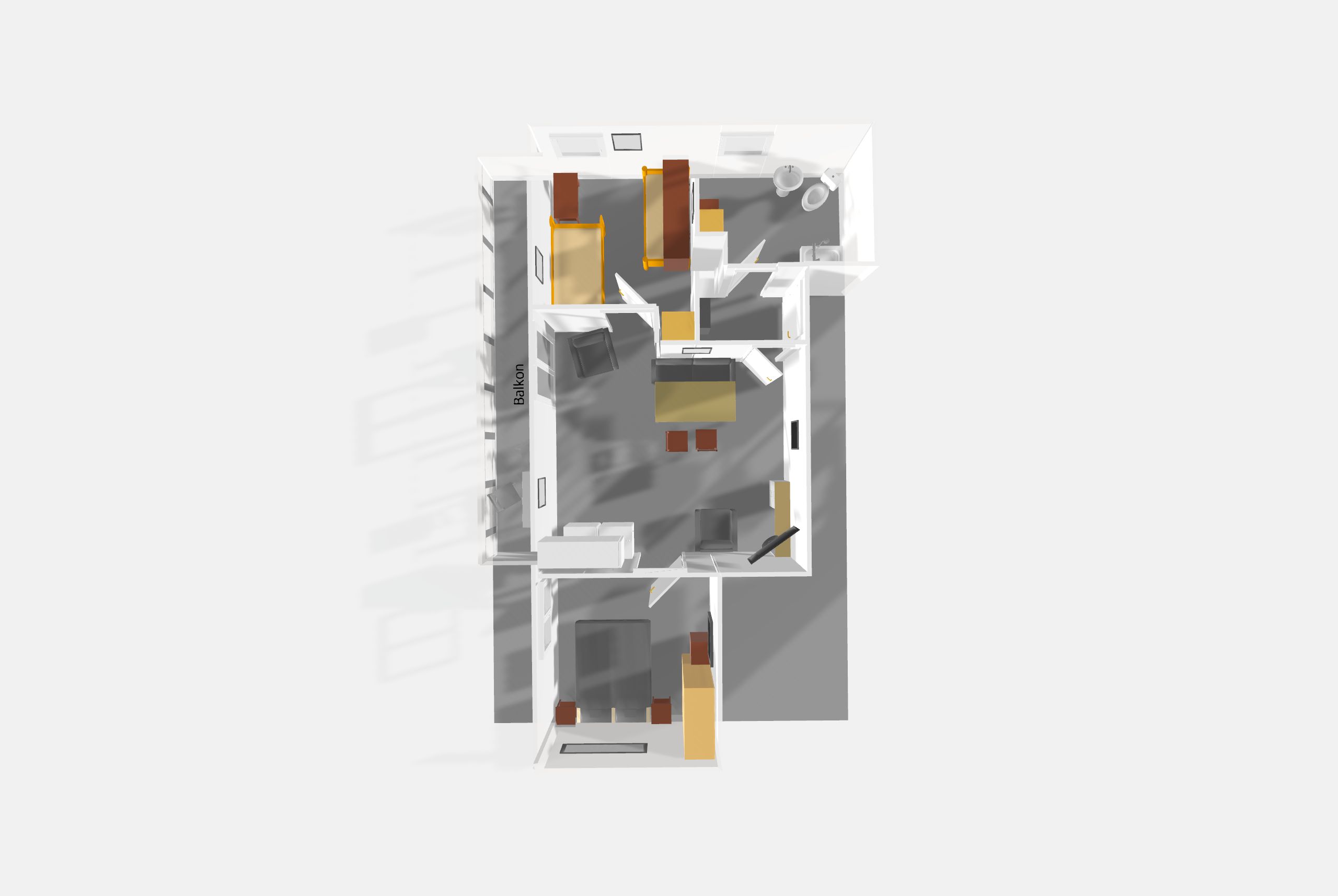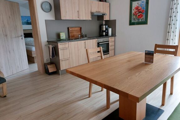 Diese komfortable Ferienwohnung verfügt über zwei getrennte Schlafzimmer und einem Balkon in ruhiger Lage. Das angenehme Ambiente der Ferienwohnung lädt dazu ein den Aufenthalt zu genießen und sich richtig wohl zu fühlen. Die hochwertige Ausstattung bestehend aus Koch- und Essgeschirr, Besteck, Gläser, Bettwäsche und Handtücher sind in ausreichender Zahl vorhanden. Kaffeemaschine (Filter), Wasserkocher, Eierkocher, Toaster und Putzutensilien runden das Angebot ab. Babybett und Hochstuhl auf Anfrage möglich. Nichtraucherwohnung; Rauchen am Balkon gestatett. Keine Haustiere möglich.