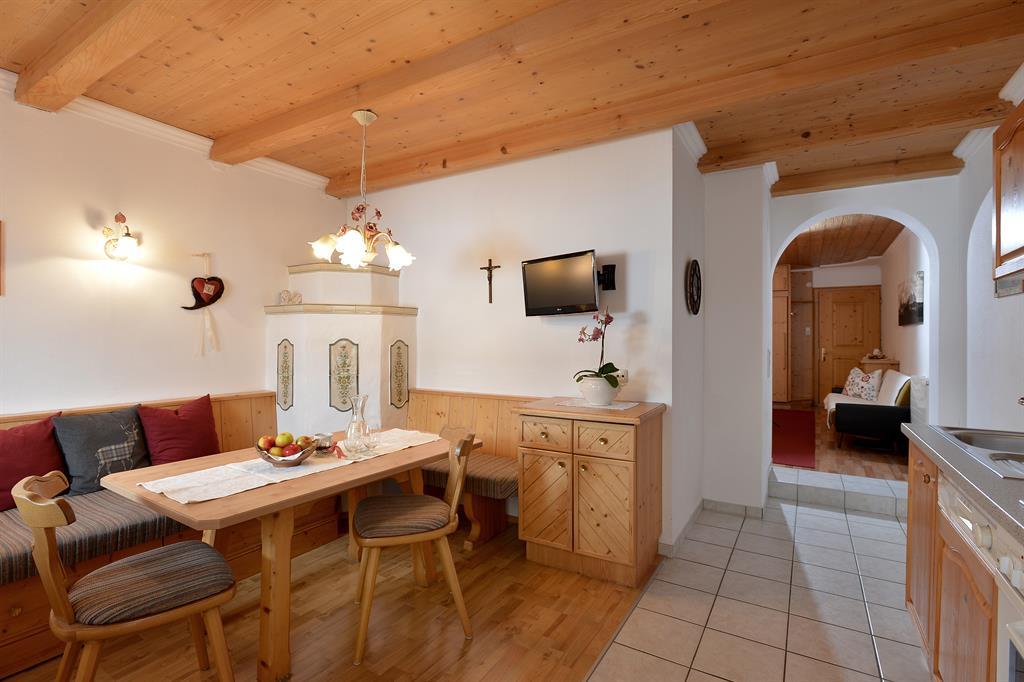 Großzügige Ferienwohnung bis 5 Pers. mit 2 Schlafzimmer, Wohnküche mit gemütlicher Essecke, Kachelofen, Geschirrspüler, Dusche/WC, TV und Südbalkon, W-Lan