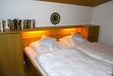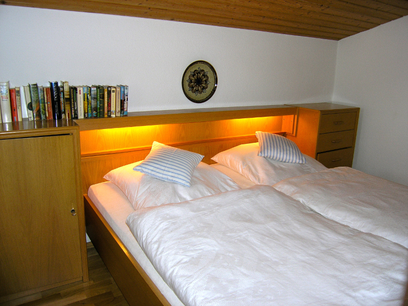 Das kleine Schlafzimmer hat ein Doppelbett und Schränkchen mit großen Schubladen und so einige gute Bücher.