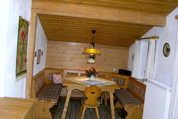 Die Küche ist gut ausgestattet und hat ein neues Ceranfeld, einen Kühlschrank, eine Mikrowelle und einen Geschirrspüler. Zudem gibt's eine gemütliche, dreiseitige Eckbank mit großem Tisch und einen Flachbild-TV.