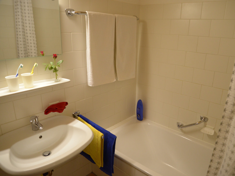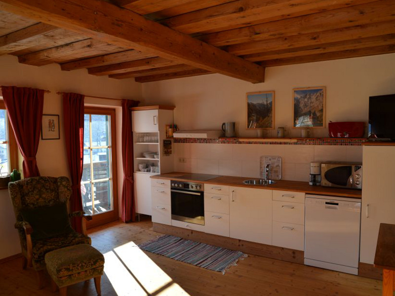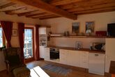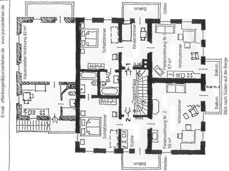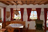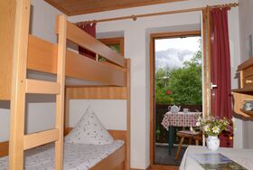 Die Ferienwohnung liegt im ersten Obergeschoss und bietet Platz auf 60 qm. Sie ist ausgestattet mit einem Schlafzimer mit Doppelbett, sowie einem Vorraum mit Stockbett für 2 Kinder, einem geräumigen Wohnzimmer mit integrierter Küchenzeile, Schlafcouch, Eckbankgruppe, TV, kostenfreiem Internet, einem Bad mit Badewanne/WC und je einem Balkon im Süden und Osten mit herrlichem Bergblick.