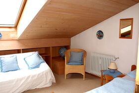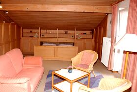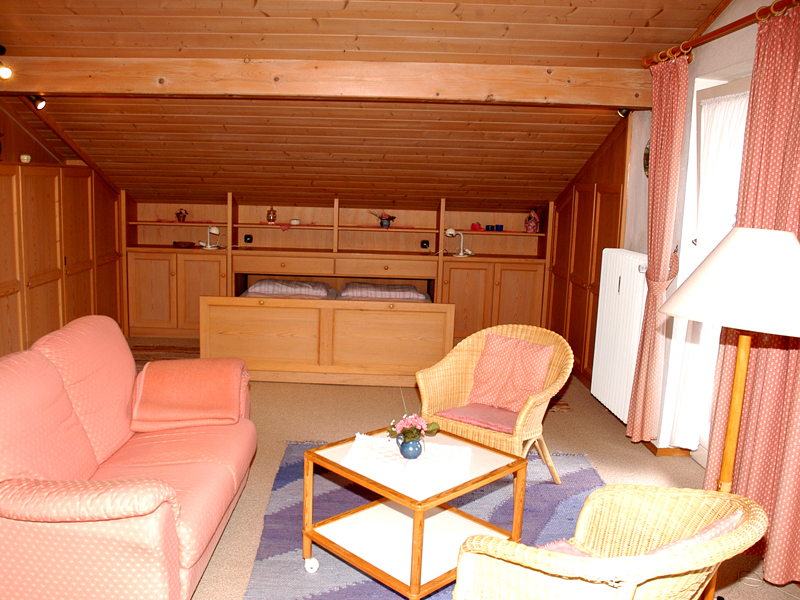 Dachstudio-2-Zimmer-Wohnung, für 4 Personen. Wohnzimmer mit intergrierter Küche.
