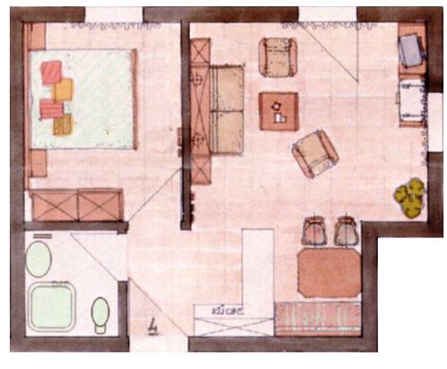 Die 46 qm große Ferienwohnung Nr. 4 befindet sich im ersten Stock des Gebäudes und ist für maximal 2 Personen geeignet. Die Komfortabel ausgestattete Ferienwohnung befindet sich in sonniger und ruhiger Lage. In der Ferienwohnung gibt es einen Wohnraum, ein Schlafzimmer und ein Badezimmer. Die Küche ist ausgestattet mit einem 2-Platten Herd, Kaffeemaschine, Toaster, Kühlschrank mit Gefrierfach, Wasserkocher, Mikrowelle.
