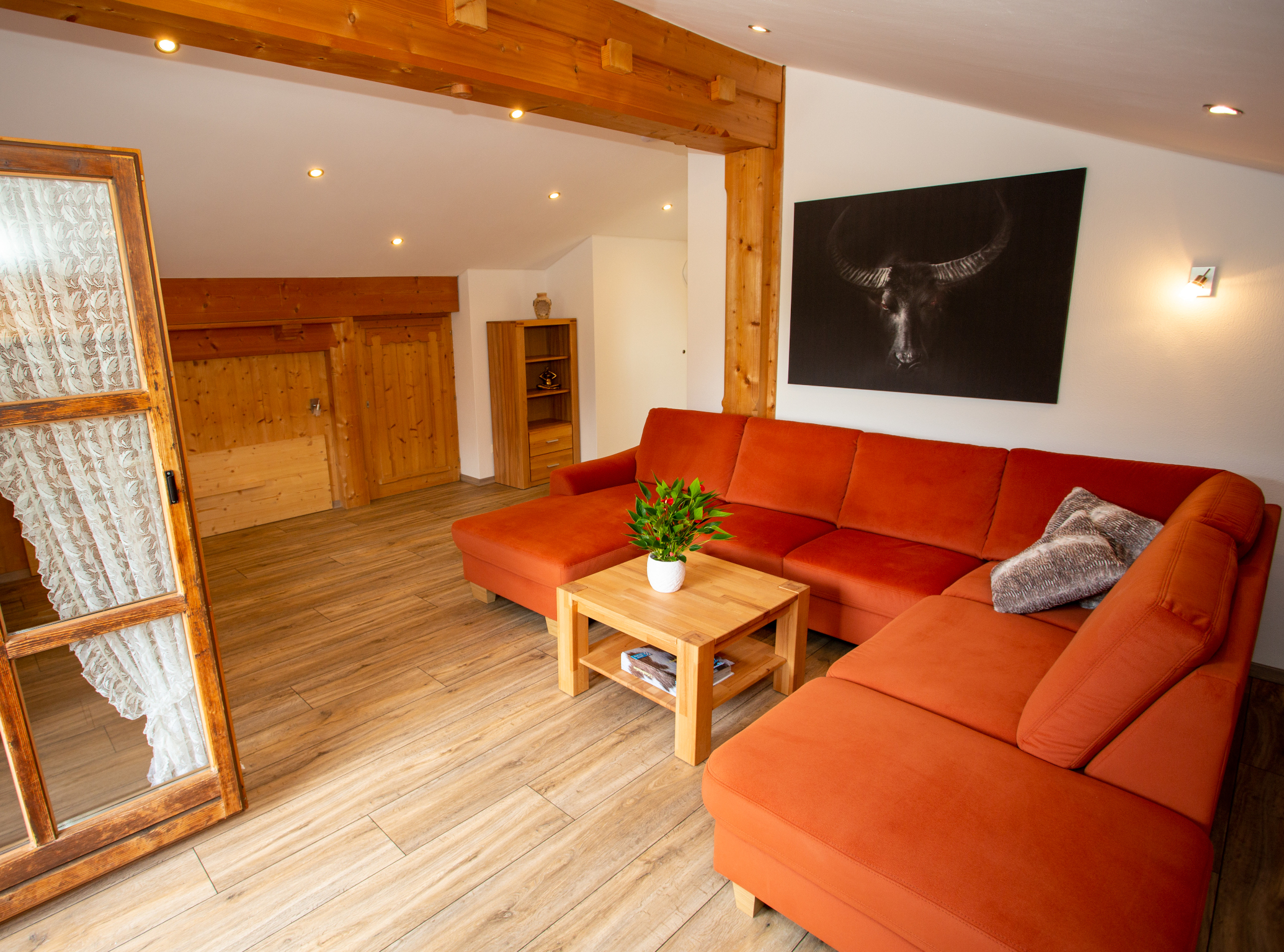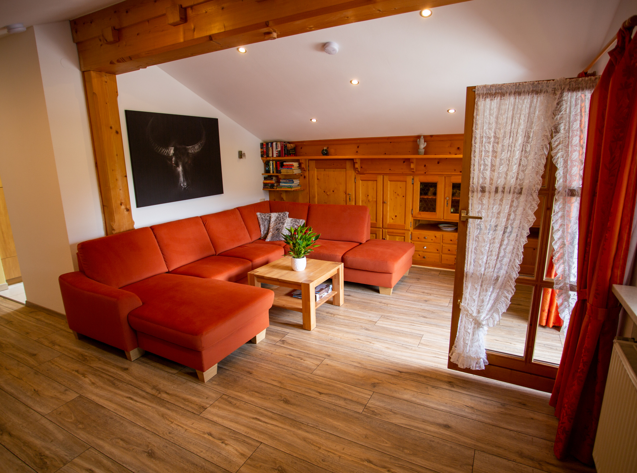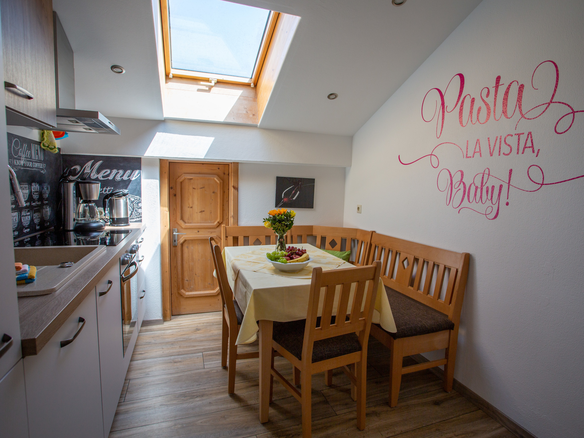 Gemütliche eingerichtete Ferienwohnung mit Blick auf den neuen Naturbadesee.