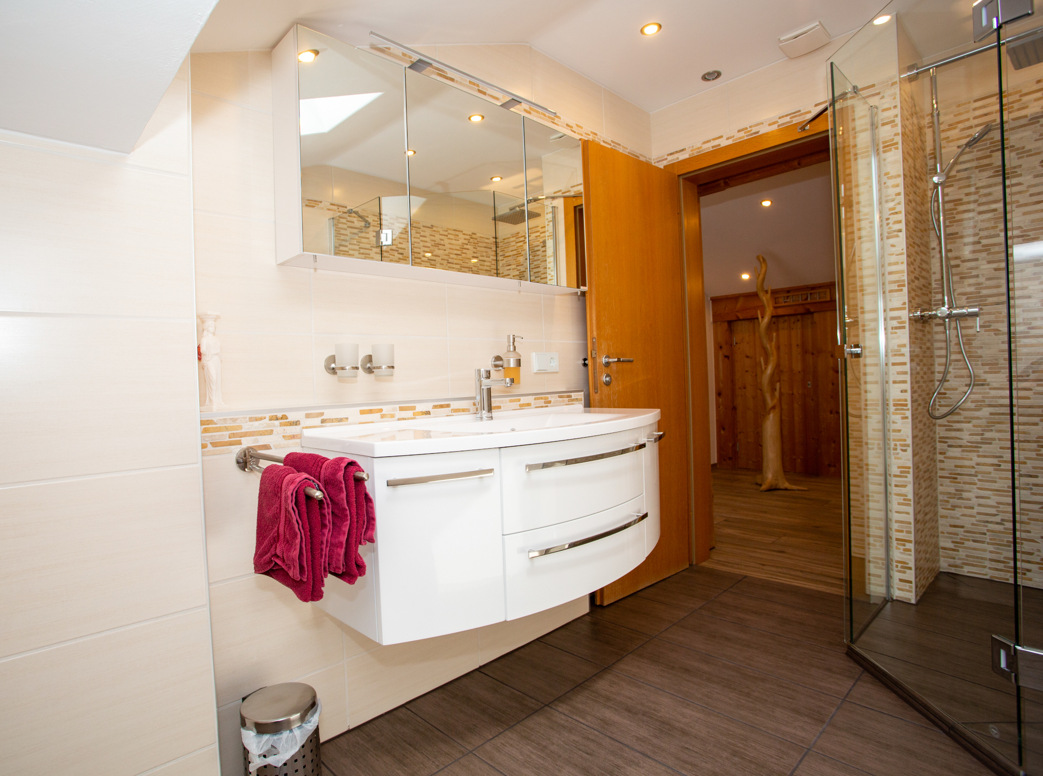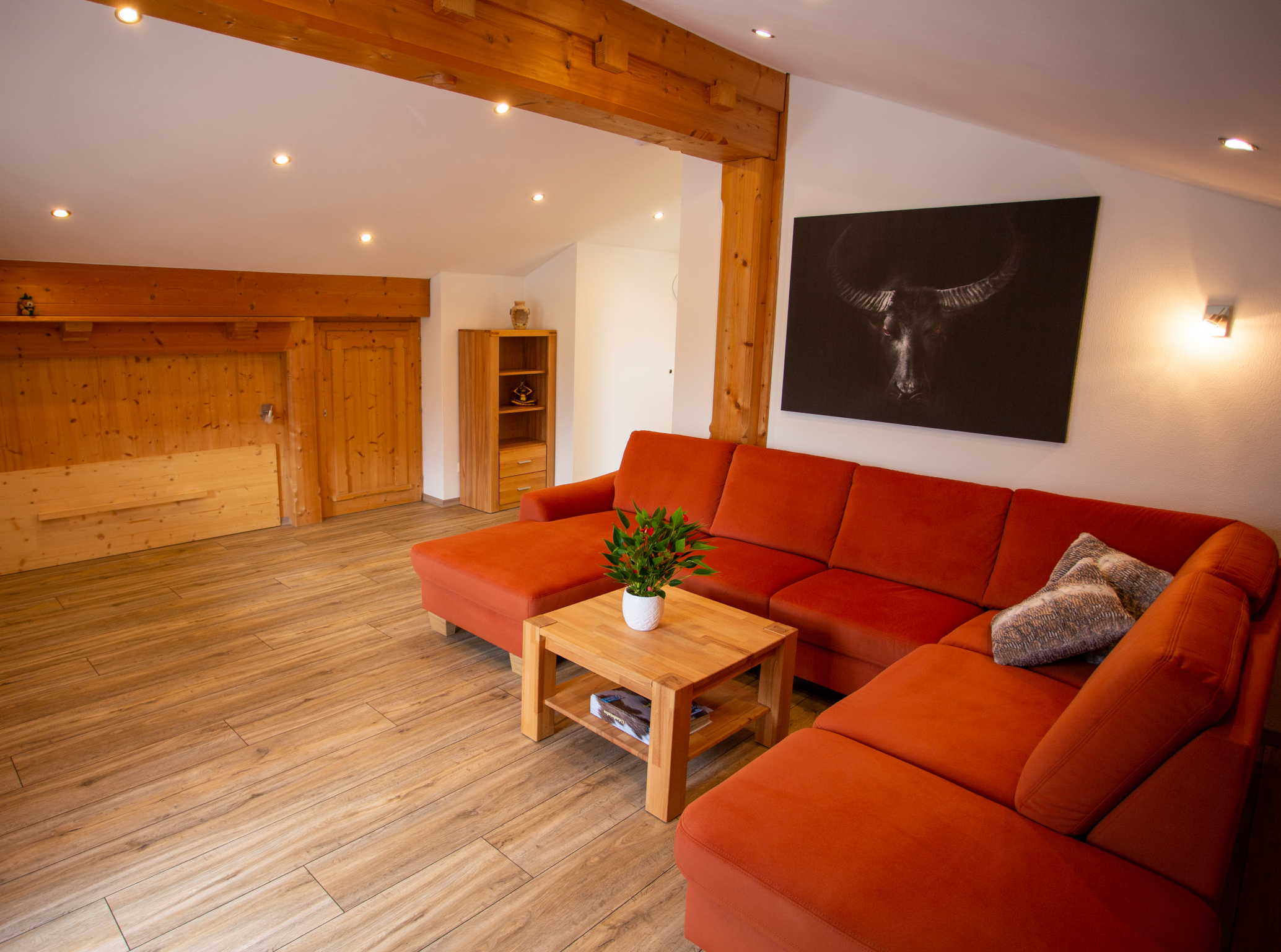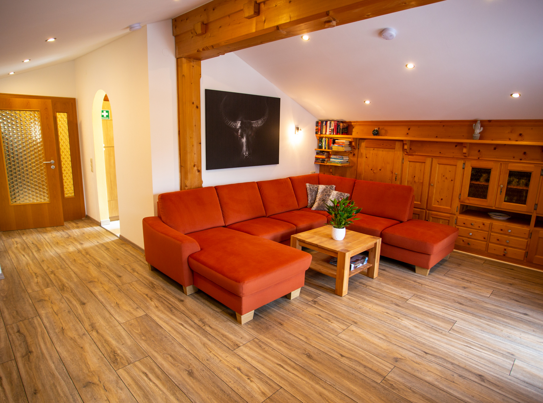 Gemütliche eingerichtete Ferienwohnung mit Blick auf den neuen Naturbadesee.