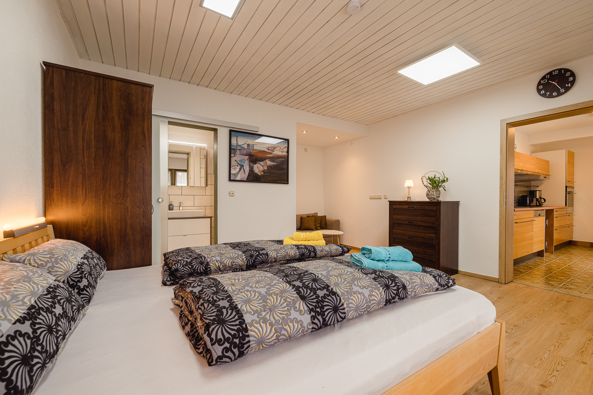 Gästehaus Friedlich - Ferienwohnung 5, Jenner, 1-2 Personen, 35qm, 1 Schlafzimmer mit eigenem Bad, Wohnküche, Terrasse
