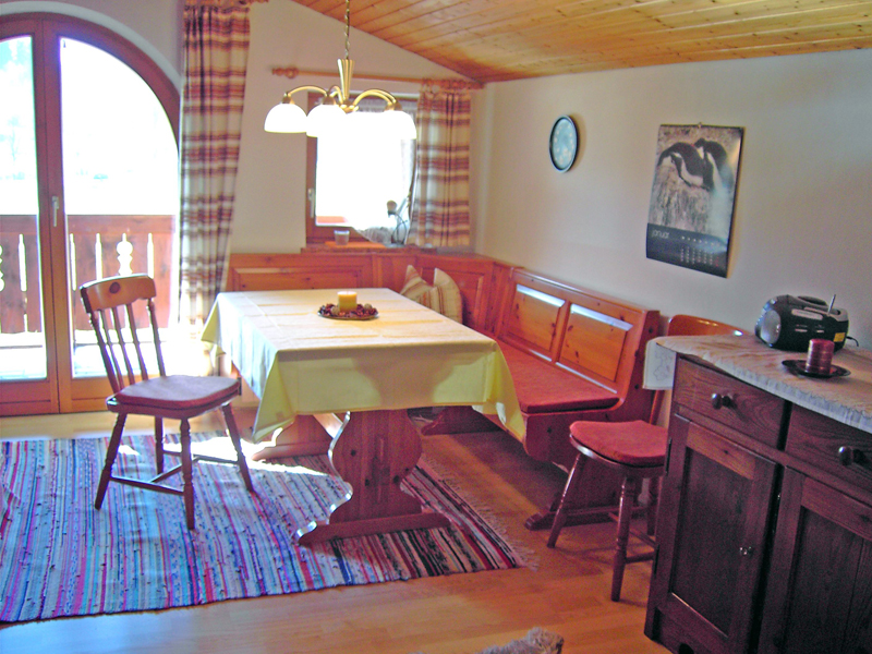 Die 55-qm-große Wohnung bietet genügend Platz für vier Personen. Durch den großzügigen Wohnbereich mit Sat-TV sowie Radio-CD-Player und bequemem Schlafsofa, ist ein Zustellbett für ein weiteres Kind möglich. Ein separates Schlafzimmer mit Doppelbett sorgt für genügend Raum für alle. Hier finden Sie auch ausreichend Stauraum für Ihr Gepäck. Ein wohnungseigener Hausgang mit Garderobe und ein Bad mit Dusche und WC vervollständigen Ihr zu Hause für die perfekten Ferien. Die Küchenzeile mit gemütlicher Essecke ist vollwertig ausgestattet und bereit für Ihre Mahlzeiten. Nicht zu vergessen ist der große südseitige Balkon mit kompletter Sitzgarnitur. Der direkte Blick auf den Watzmann und den Hochkalter sorgt für einen unvergesslichen Panoramaausblick, von morgens bis abends. Hunde sind in dieser Wohnung nicht erlaubt.