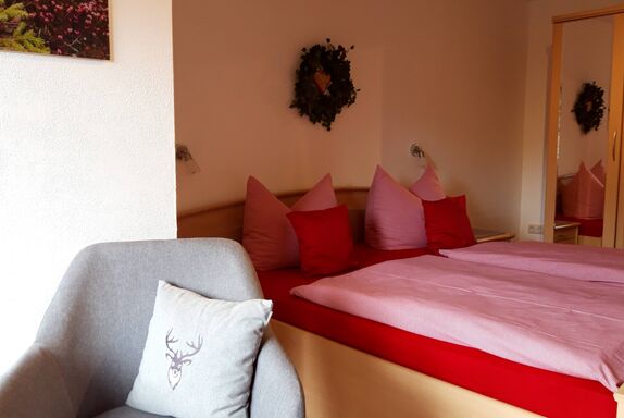 Unser Angebot für Sie umfasst 4 gemütliche Doppelzimmer mit Balkon und herrlichem Gebirgsblick, sowie eine komfortable Ferienwohnung mit 2 separaten Schlafzimmern, ideal für Familien. Alle Zimmer sind im freundlichen Landhausstil eingerichtet und haben Dusche und WC, TV (70cm), WLAN-Verbindung sowie die Möglichkeit bei Bedarf ein Kinder-Reisebettchen kostenlos von uns dazustellen zu können.