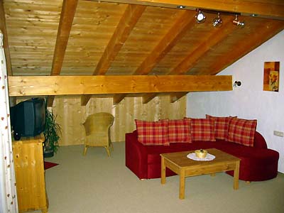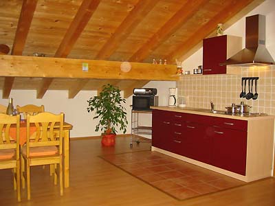 Sie wohnen in einem neugestalteten und gemütlichen Zwei-Zimmer-Appartement unter einem sichtbaren Dachstuhl mit West- Balkon. Das Appartement bietet 53 m² Wohnfläche. Die Ausstattung umfasst: Dusche/WC, Föhn, Handtücher und Bettwäsche, Zentralheizung, Kabel-TV, Küchenzeile mit 2er- Kochfeld und Kühlschrank, Pizzabackofen, Mikrowelle, Kaffeemaschine, Wasser- und Eierkocher.