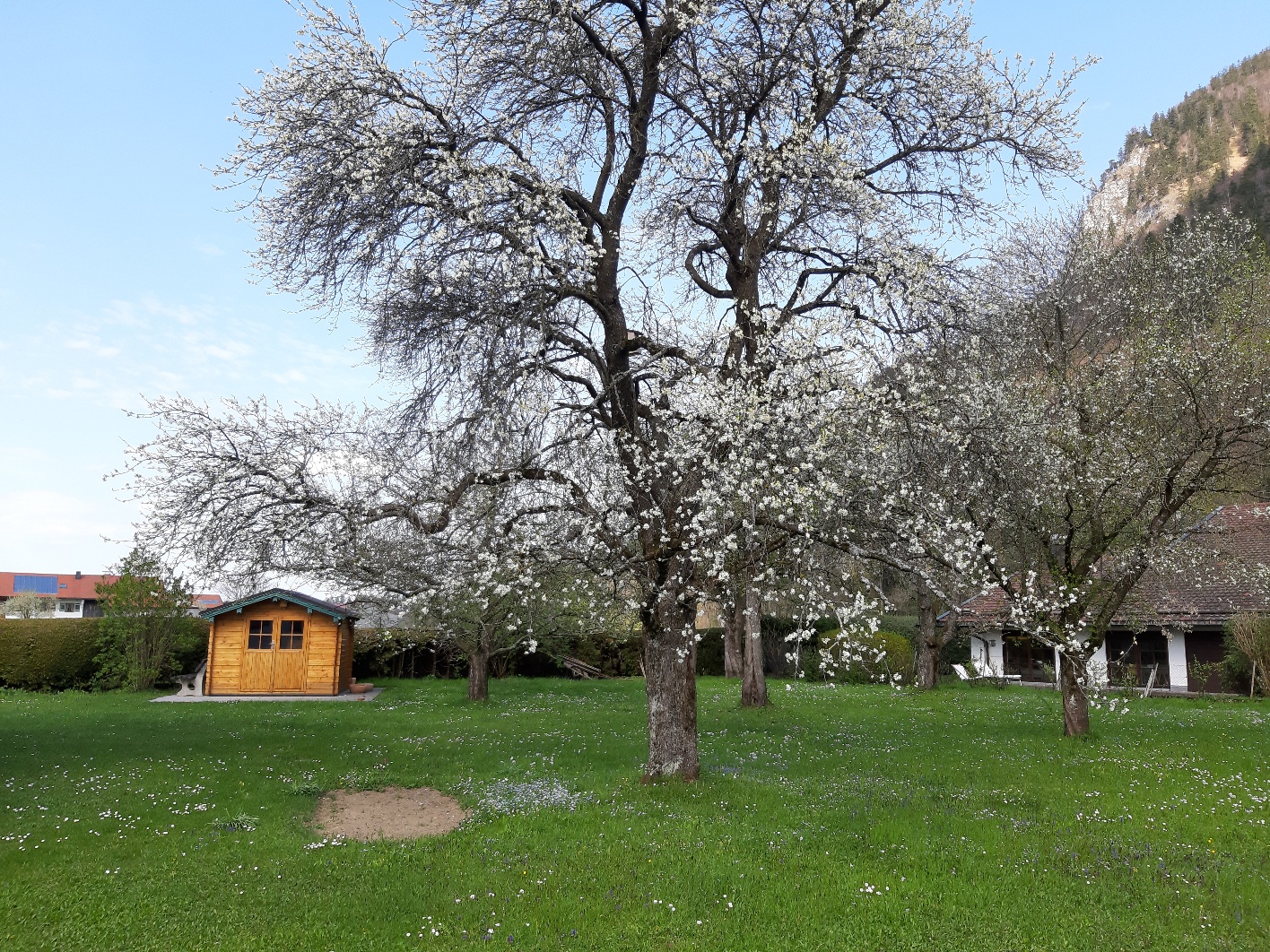 Wir möchten Sie sehr herzlich in unserer gut ausgestatteten Ferienwohnung (65qm) für 2 Personen, mit eigenem Eingang und Terrasse begrüßen. Die ruhige Erdgeschosswohnung liegt südseitig mit Zugang über den Garten. Sonnige Lage am Ortsrand mit Blick auf die umliegenden Chiemgauer Berge. 15 Gehminuten zur Ortsmitte. Ausstattung: Wohnküche mit Holzboden, gemütlicher Couch, Essgruppe in Wildeiche, Sat-TV, Stereoanlage, Küchenzeile mit Spülmaschine, Kühl/Gefrierkombination, Backofen, Ceranfeld, Kaffeemaschine, Wasserkocher, Toaster, Eierkocher. Separates Schlafzimmer in Wildeiche mit Doppelbett (Länge 2m), Holzboden und Mückengittertür. Großes Badezimmer mit Dusche, Badewanne, Föhn, Wäscheständer, separates WC. Kostenloses WLAN, Bettwäsche, Hand- und Geschirrtücher inklusive.