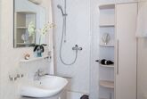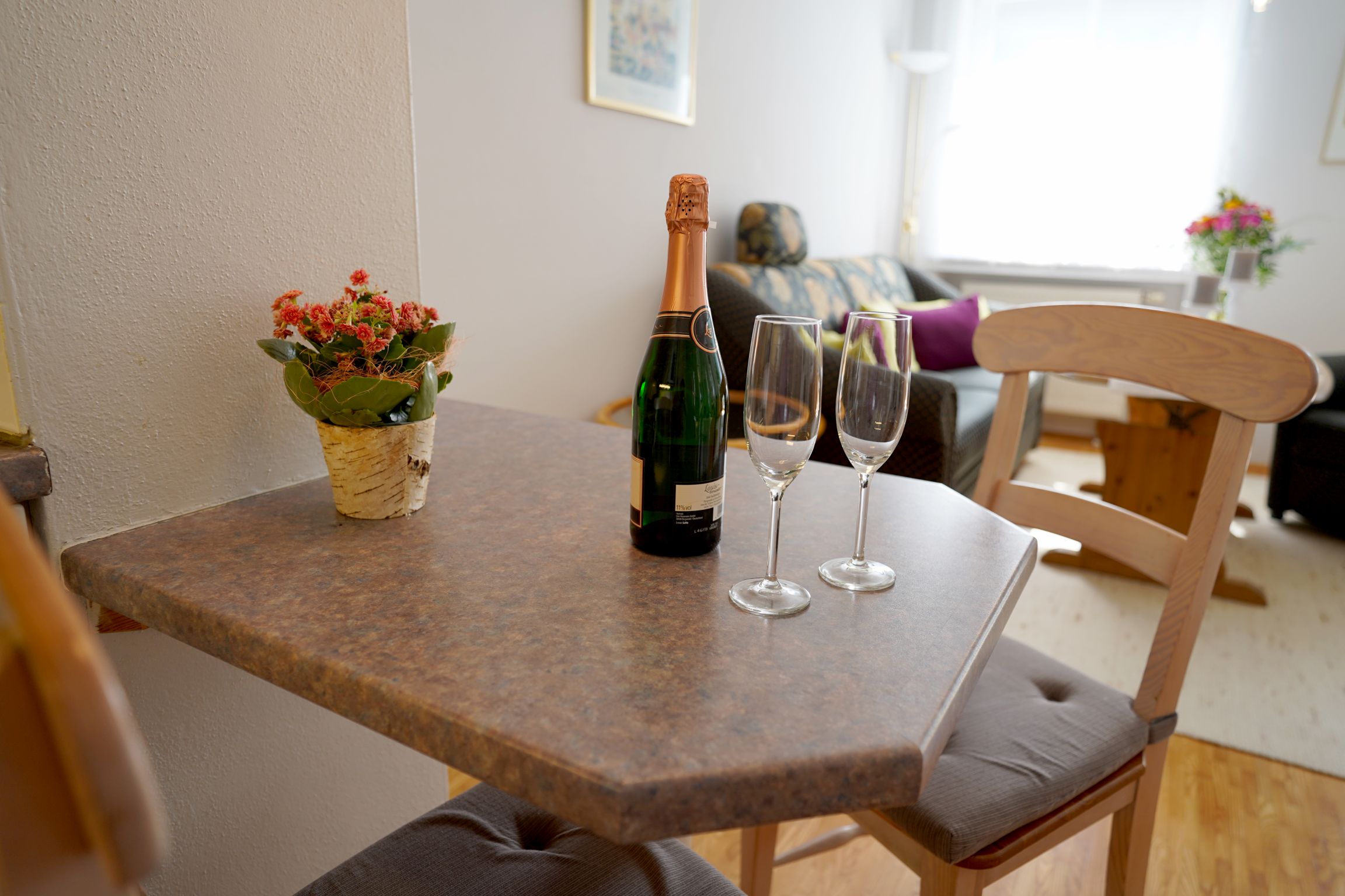 Unsere Nichtraucher Ferienwohnung Mittendrin liegt in der Kurzone I, direkt in der Nähe des Ortenauparks. Die Ferienwohnung ist ca. 45 m² groß und ausgestattet mit einem kleinen Flur, Wohnzimmer mit vollausgestatteter Küchenzeile, kleinem Essplatz und Balkon mit Gartenmöbeln und Sonnenschirm. Vom Wohnzimmer gelangen Sie in das Schlafzimmer mit zwei Liegeflächen von je 1,00 m x 2,00 m. Das Bad verfügt über eine Dusche mit Duschhocker und Pendeltüren zum leichten Ein- und Aussteigen. Wohnzimmer und Schlafzimmer sind mit Parkettfußboden, das Bad und der Flur mit Fliesen ausgestattet.