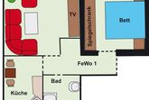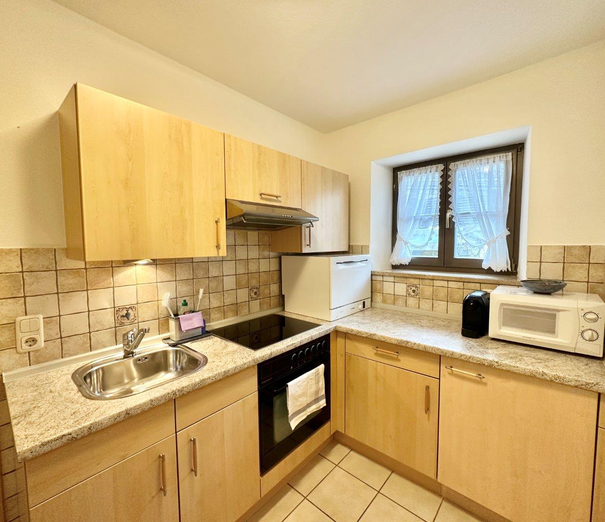 Unsere etwa 50 Quadratmeter große Wohnung, direkt im historischen Zentrum, ist für zwei Personen (für Paare) bestens geeignet.Die funktionelle Küche ist mit einem Vierer-Kochfeld (Ceran) und Backofen, Kühlschrank mit Gefrierfach, Mikrowelle sowie weiteren Elektrogeräten ausgestattet.Das modern eingerichtete Wohnzimmer ist mit einer Ledercouch, Stereoanlage (Alexa), SAT-Fernsehen und einem Arbeitstisch ausgestattet und bietet Ihnen eine angenehme Wohnqualitär in blau-gelb gehaltene Raum zum Schlafen bietet Ihnen ein erhöhtes französisches Bett und einen großen Spiegelschrank.Im Bad finden Sie eine Duschkabine, eine Toilette, eine Waschmaschine, ein Waschbecken und einen Fön. Handtücher sowie Bettwäsche sind natürlich inklusive.Die Wohnung ist mit Fließen-, Parkett-, und Teppichböden r Eingang für die Wohnung befindet sich auf der Rückseite des Hauses.