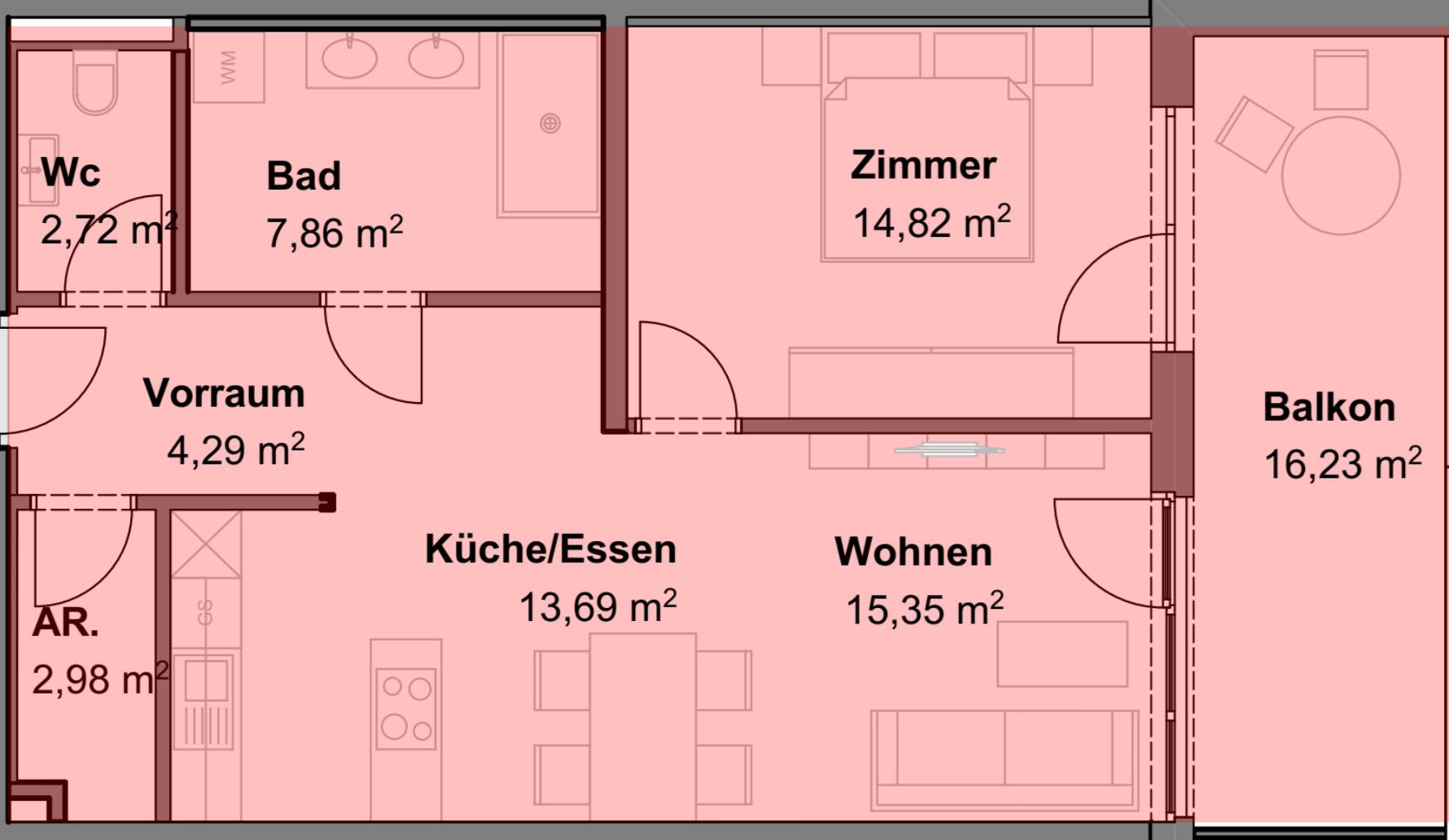 Vom überdachten 17 qm großen Süd-Balkon genießen Sie den tollen Blick auf das Kaisergebirge und sind nur einen Katzensprung vom Ufer des Walchsees entfernt welcher Sie im Sommer mit 25 Grad Wassertemperatur zum Baden einlädt.