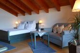 Diese für bis zu zwei Personen geeignete 1-Zimmer-Studiowohnung ist mit einem großzügigen Wohn-/Schlafraum mit Sitzecke, Bad mit Dusche und WC, Esstisch und ebenfalls mit einem im Sommer möblierten Balkon ausgestattet. Auch die separate Küche ist komplett ausgestattet mit Kühlschrank, Mikrowelle, Eierkocher, Kaffeemaschine, Toaster und einer 2-Platten-Kochstelle. WLAN vorhanden. Für Ihren Pkw steht selbstverständlich ein Stellplatz und für ihre Skiausrüstung ein Platz in der Hausgarage zur Verfügung. Im Keller befinden sich die Abtropfwannen für ihre Skischuhe.