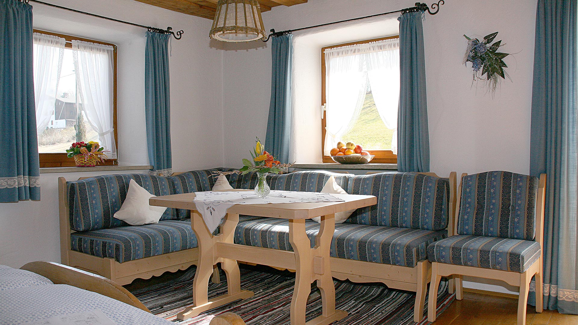 Die Ferienwohnung verfügt über eine Grundfläche von ca. 27 qm. Die Ausstattung reicht von einer Eckbank, Sat-TV, einer modernen und großzüg eingerichteten Küche mit Mikrowelle und Tiefkühlfach bis hin zum Bad mit Dusche und WC. Für einen ruhigen Schlaf sorgt das Doppelbett im Zentrum der Ferienwohnung. Der möblierte Balkon mit Aussicht auf die Berge rundet das Angebot ab.