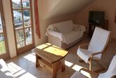Genießen Sie die Aussicht in die Berge aus dem geräumigen Wohn-/Esszimmer und aus dem Schlafzimmer der ruhig gelegenen Wohnung. Der Küchenbereich mit Ceran-Kochfeld und einem Backofen ist mit zahlreichem Zubehör ausgestattet. WLAN kostenlos. Kinderhochstuhl und Kinderbett vorhanden. Allergikergeeignet.