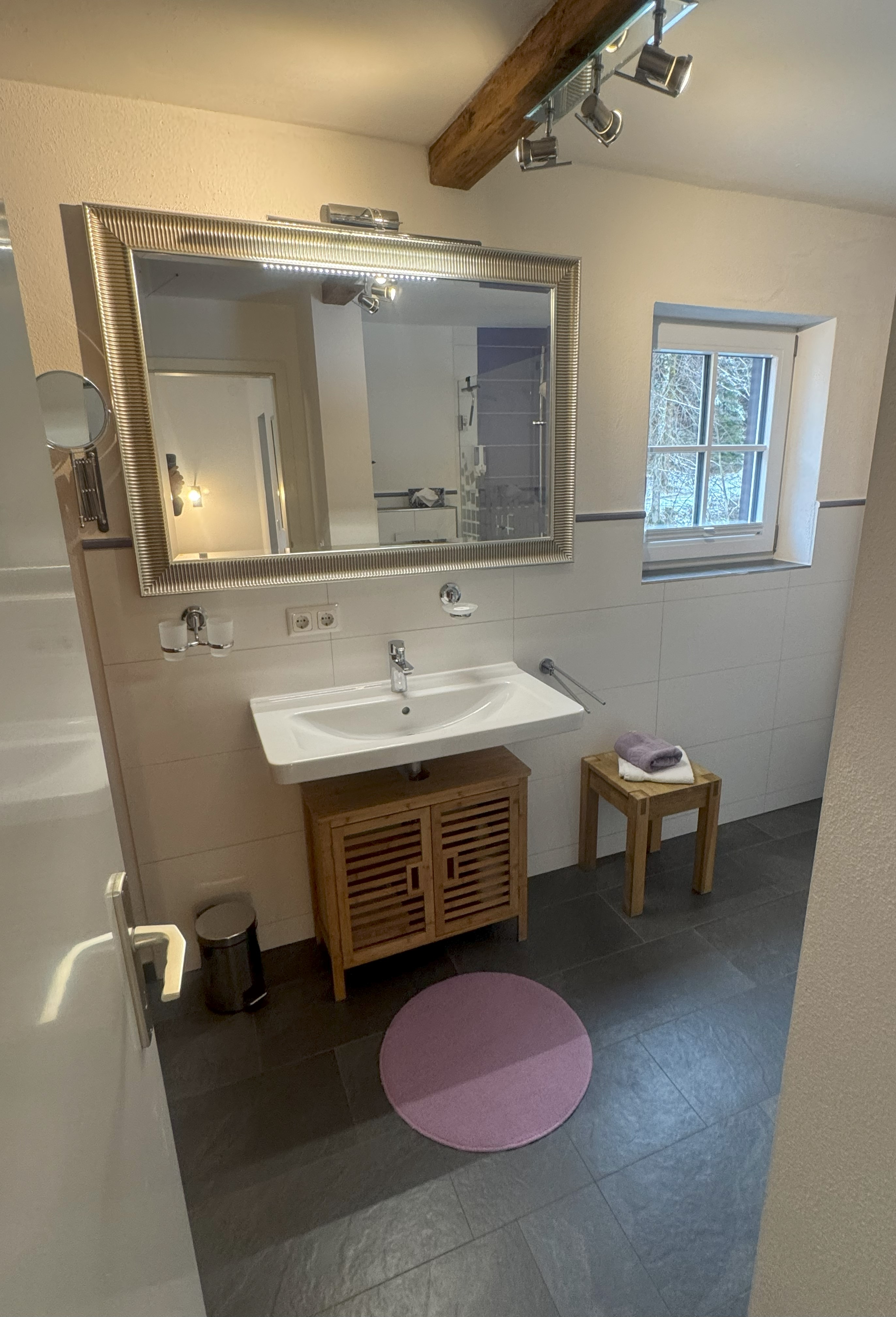 Attraktiv und neu eingerichtete Ferienwohnung mit insgesamt 62 m² Wohnfläche (inkl. eigenem Balkon und Terrasse). Ein ganz besonderes Angebot: Neben dem neuen, luxuriösen Badezimmer mit Fußbodenheizung, Waschtisch, Dusche + WC und Handtuchwärmer wartet auf Sie eine Infrarot-Wärmekabine (für 2 Personen) aus Zedernholz als gesunde und schonende Wärmetherapie. Sonstige Einrichtung: Free-Wlan, 2 Flat-TV (Wohn- und Schlafraum), DVD, Wohn- und Schlafraum getrennt, im Wohnbereich Funktionssofa für 1-2 Personen, im Schlafzimmer 1 Doppelbett (2x2 m), zusätzliche Liege im Schlafbereich. Einbauküche mit Ceran-Kochfeld (4 Kochfelder), Geschirrspüler, Backofen, Mikrowelle, Kühlschrank mit Gefrierfach und Dunstabzughaube. Wunderschöne Sicht vom eigenen Balkon auf den Hohen Göll im Südosten und auf die Ramsauer Ache, auf der Terrasse Sicht auf das Gebirgsmassiv der Reiteralm im Westen.