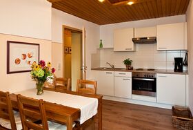 Unsere Ferienwohnung ist mit zwei separaten Schlafzimmern ausgestattet. Sie verfügt über einen Balkon und Sie können ebenfalls den Garten mitbenutzen. Die voll ausgestatte Wohnküche mit Essecke lädt zum Verweilen ein. Die Nichtraucher-Wohnung ist mit zwei Bädern mit Dusche/WC ausgestattet und befindet sich im Dachgeschoss. Sie ist für bis zu 4 Personen geeignet. Auf Wunsch erhalten Sie ein zusätzliches Kinderbett.
