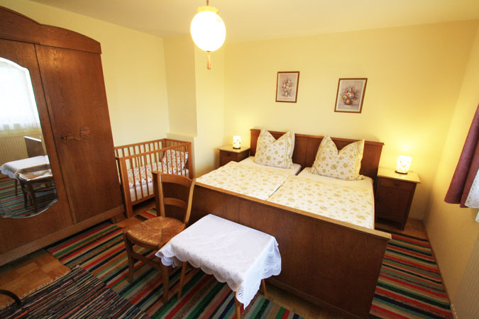 Unsere gemütlichen, kinderfreundlichen Ferienwohnungen sind im 1. Stock mit Balkon. Sie wurden nach DTV Richtlinien mit 3 Sternen ausgezeichnet, und bieten Platz für je 4 - 5 Personen. Jede Wohnung besteht aus Wohnküche mit Küchenzeile, Essecke, Sofa, TV-Sat-Anschluss und Balkon. Doppelbett- und Kinderzimmer sind liebevoll eingerichtet. Bei Bedarf kann ein Kinderbett dazu gestellt werden. Bettwäsche und Allergiker Betten sind selbstverständlich vorhanden. Im Bad mit WC liegen Hand- und Duschtücher und ein Fön für Sie bereit.