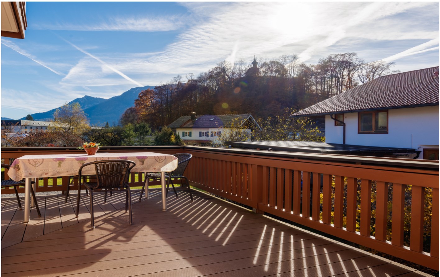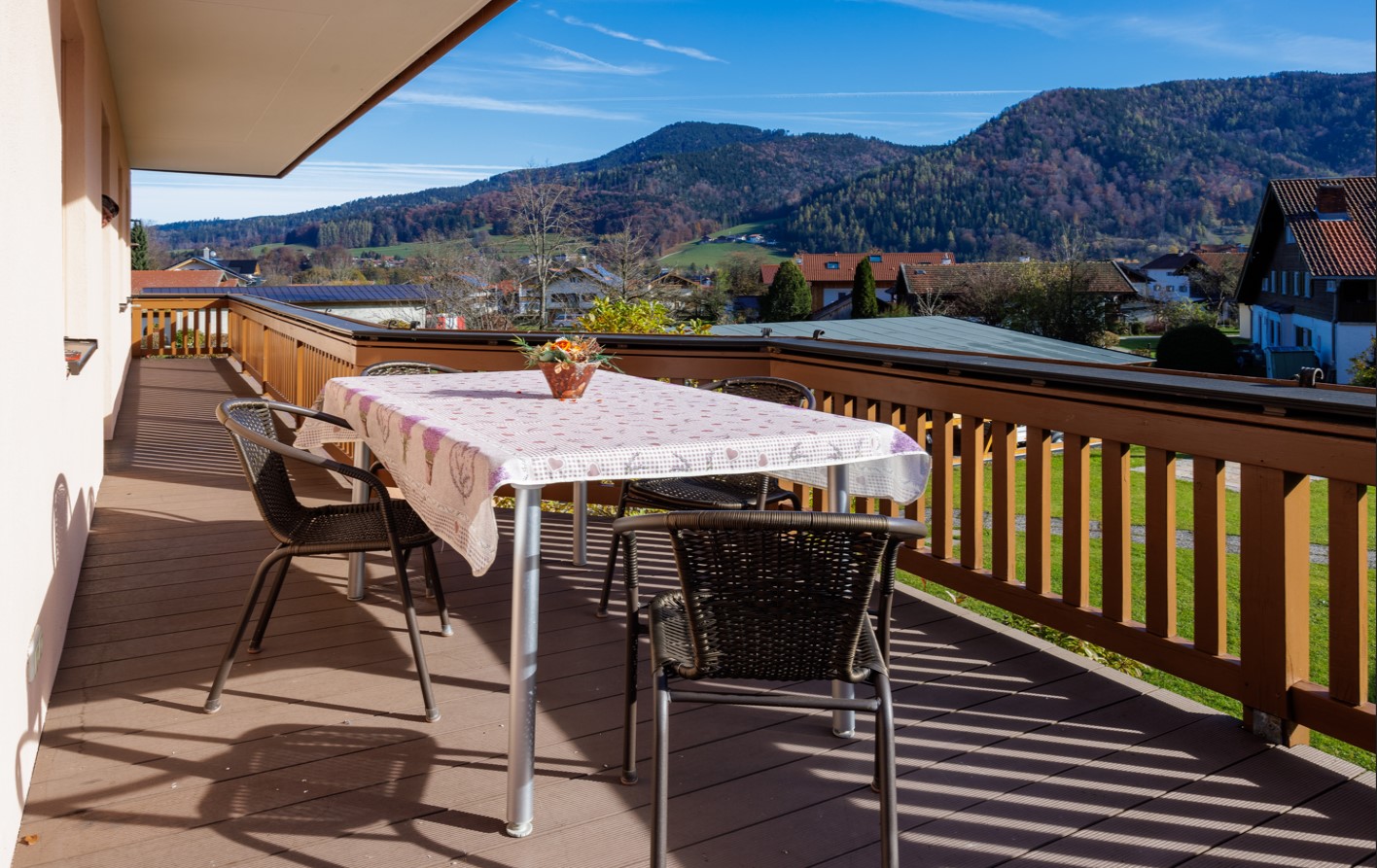 Wir möchten Sie in unserem neu renovierten Haus - Ihrem Ferienzuhause - herzlich willkommen heißen. Unsere Nichtraucher-Ferienwohnungen sind neu ausgestattet und mit allem Wohnkomfort gemütlich eingerichtet. Jede Wohnung hat einen eigenen, großzügigen Balkon, von dem Sie die herrliche Aussicht auf unsere Berge genießen können. Im Parterre befinden sich eine barrierefreie Wohnung. Diese verfügt über Wohnzimmer, zwei Schlafzimmer, Badezimmer mit Dusche/WC (behindertengerecht) sowie ein weiteres Badezimmer. Als Gemeinschaftsräume stehen unseren Gästen ein Freizeitraum mit Fitnessgeräten, Kinderspielzimmer, Waschraum mit Waschmaschine und Wäschetrockner sowie ein Fahrrad- bzw. Skiabstellraum zur Verfügung. Eine große Freifläche mit Liegewiese, Kinderspielplatz und Grillplatz lädt zum Verweilen und Entspannen ein. Im Winter sind es nur wenige Schritte zu den Westernberg-Liften und zur Skischule. Der Einstieg in die Ruhpoldinger Skiwanderloipe befindet sich in unmittelbarer Nähe. Parkplätze direkt am Haus.