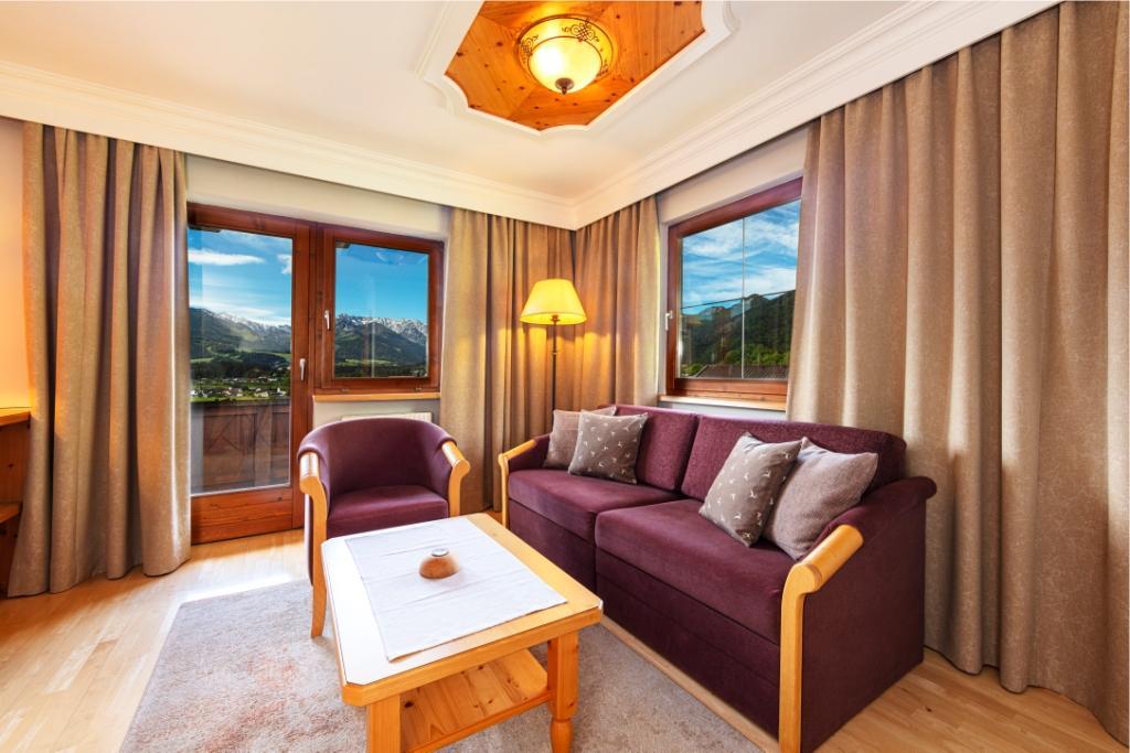 Apart. KAISERWINKL: großzügige Wohnung mit 2 Schlafzimmer, im 1. und 2. Stock gelegen, geräumiges Wohnzimmer mit Schlafsofa, Essecke, Küche mit Backrohr, Badezimmer mit Dusche, WC separat, 3 Südbalkone mit tollem Bergblick, TV, Radio, Safe, Parkettböden, Nichtraucher;