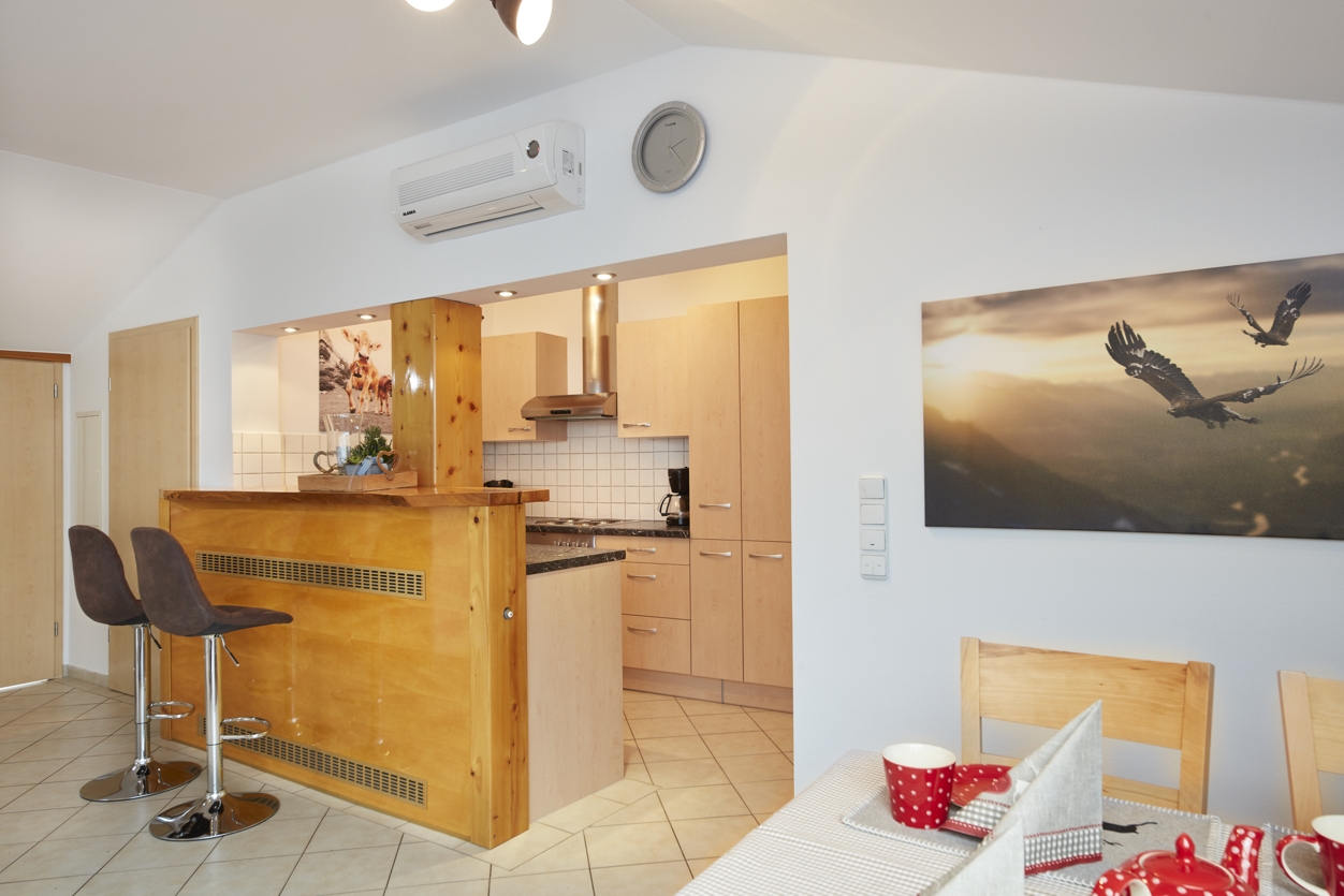 Ferienhaus Brunnau: Ferienwohnung Kaffeekännchen: Geschmackvoller Urlaub am Königssee. Mitten in Schönau am Königssee, zentral im Tal und gleichzeitig in einer ruhigen Umgebung, findet sich diese besondere Ferienwohnung. Hochwertig, auf einander abgestimmt und gemütlich ist die Inneneinrichtung der Ferienwohnung im Haus Brunnau. Das Wohnzimmer besticht mit dem hellen Panoramafenster, gemütlichem Sofa, Fernseher im Wohnbereich. Die gemütliche Bar im Küchenbereich lädt zum gemeinsamen Kochen ein. Die Küche ist vollständig ausgestattet mit Herd, Backofen, Spülmaschine, Kaffeemaschine, Mikrowelle, und Toaster. Einen Akzent setzt der moderne Tresen. Die zwei Schlafzimmer sind jeweils mit Doppelbetten eingerichtet. Im modernen Bad, mit reichlich Platz für Utensilien, steht Ihnen auch eine Waschmaschine zur Verfügung. Ein großer, gemütlicher Südwestbalkon lässt die Urlauberherzen höherschlagen!