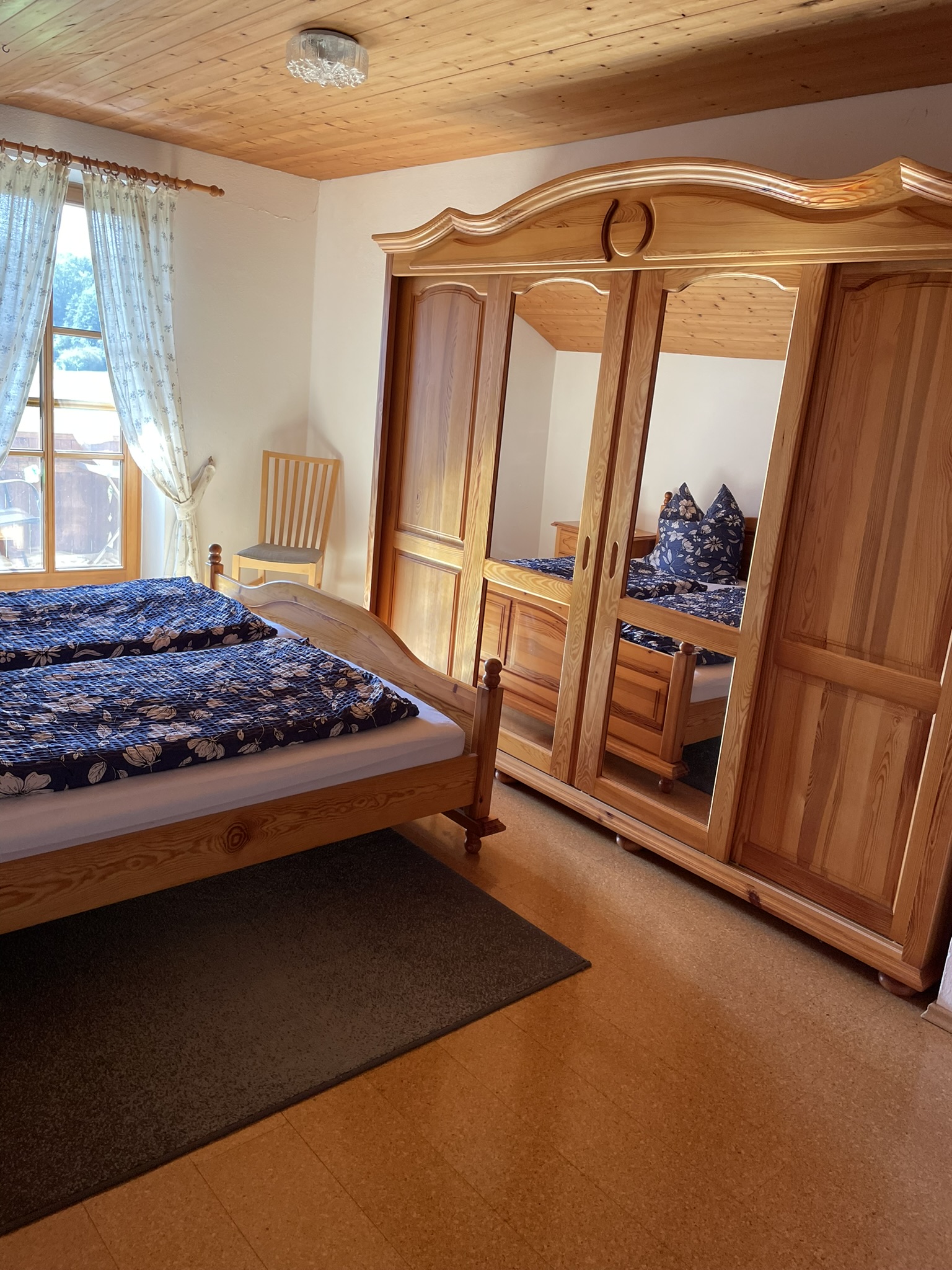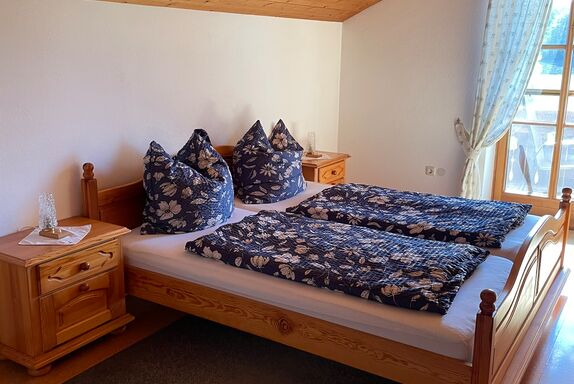 Es erwartet Sie eine sehr helle und freundliche Ferienwohnung 75 m² mit eigenem Eingang. Eine Wohnküche mit Sitzgruppe, zwei Schlafzimmer mit einem Doppelbett und drei Einzelbetten, beide Schlafzimmer haben einen Balkon mit herrlichen Ausblick in die Berge. Handtücher und Bettwäsche sind selbstverständlich vorhanden. Bad, WC und Dusche. Auch für die Kleinen ist vorgesorgt, es stehen Hochstuhl und Gitterbetten zur Verfügung.