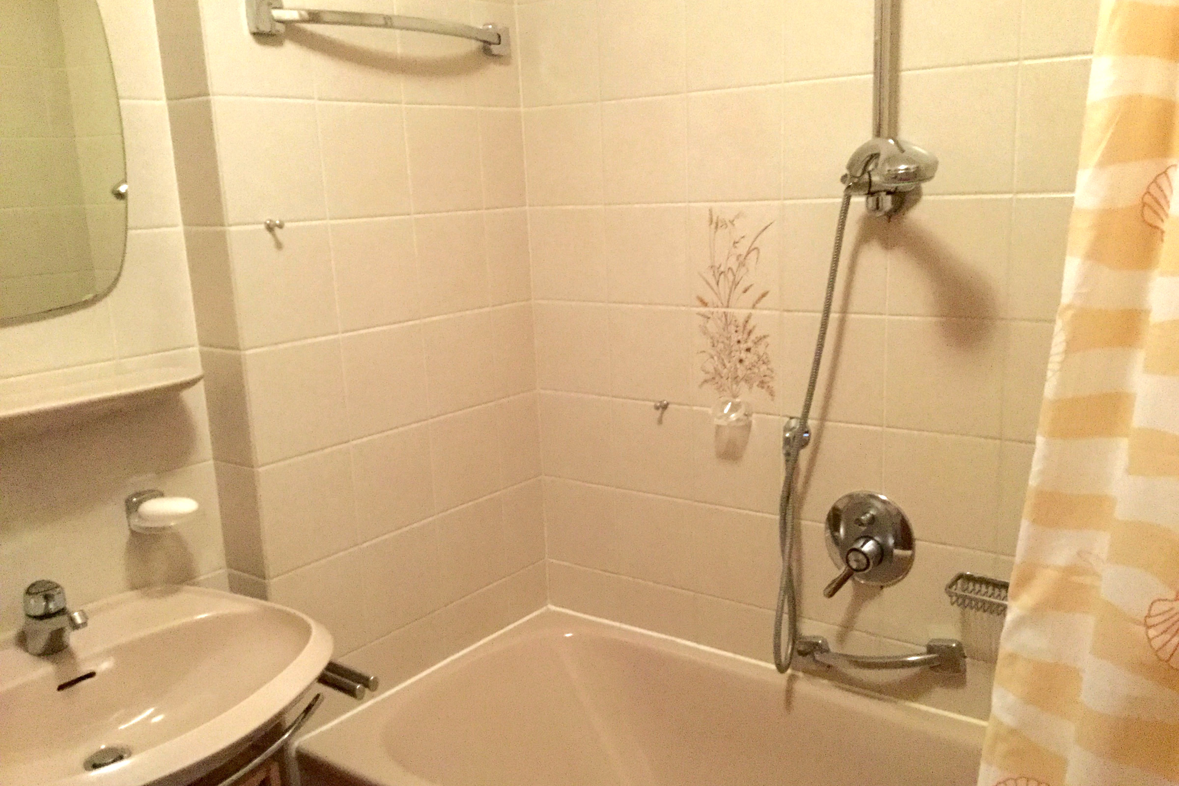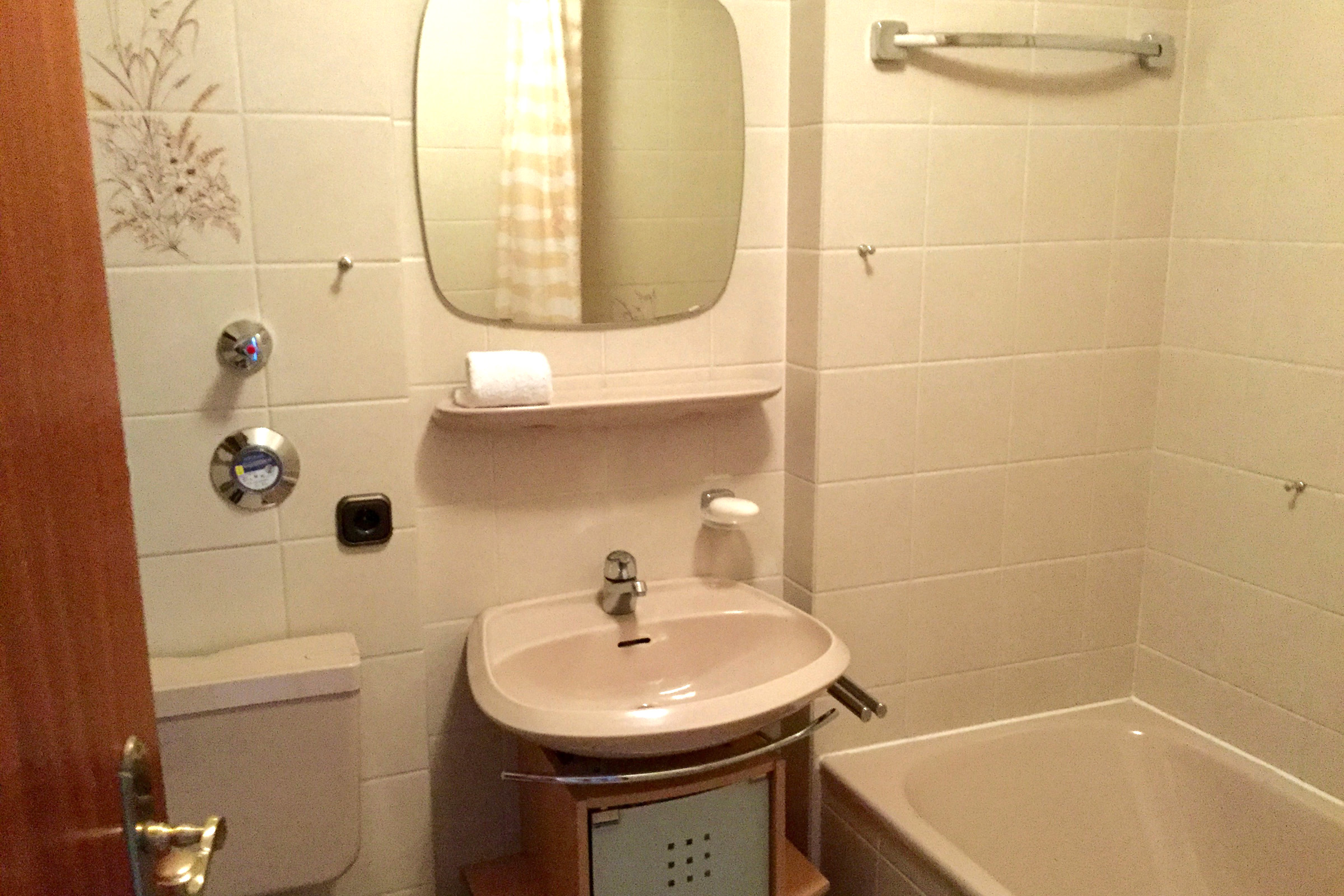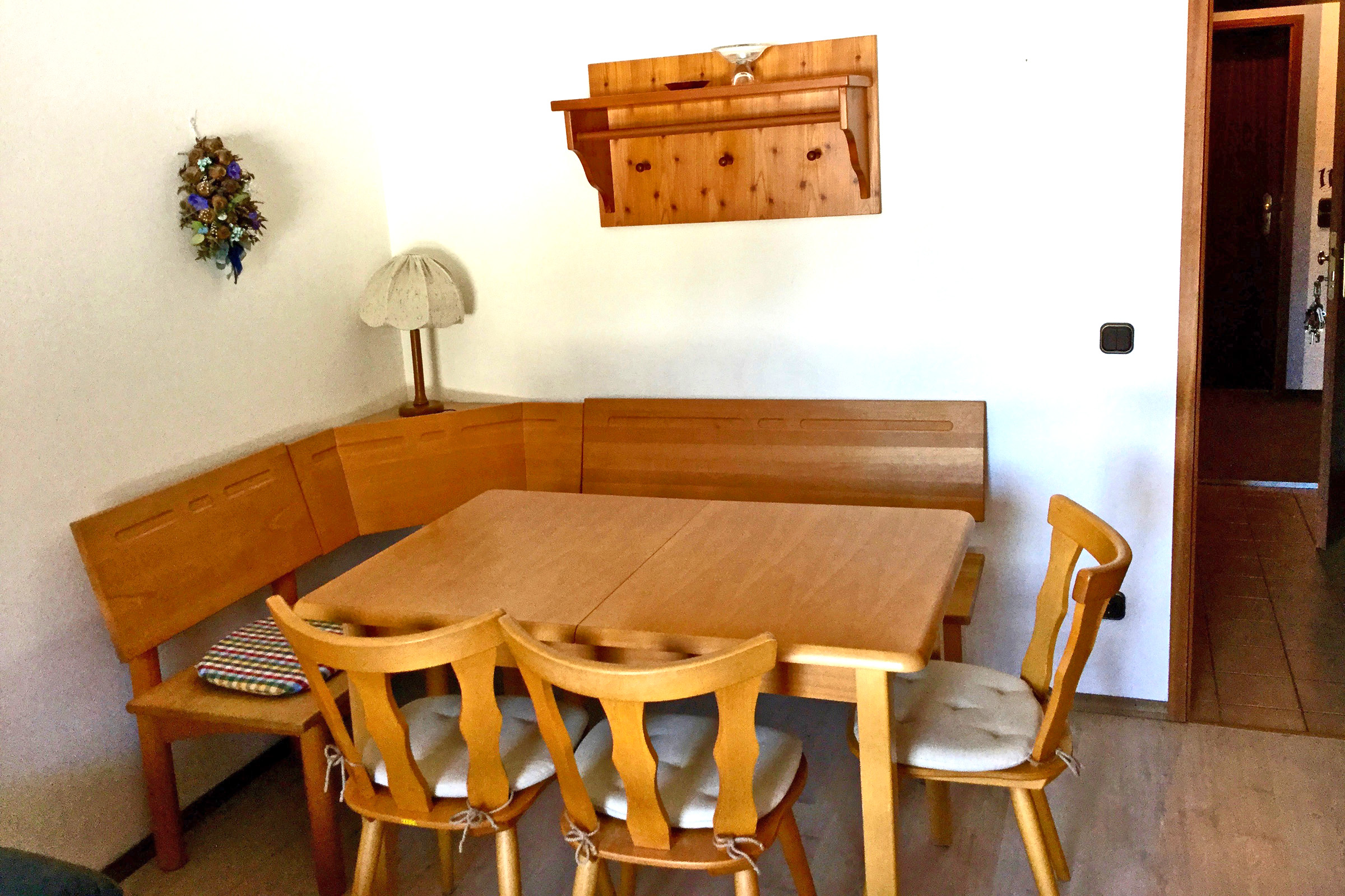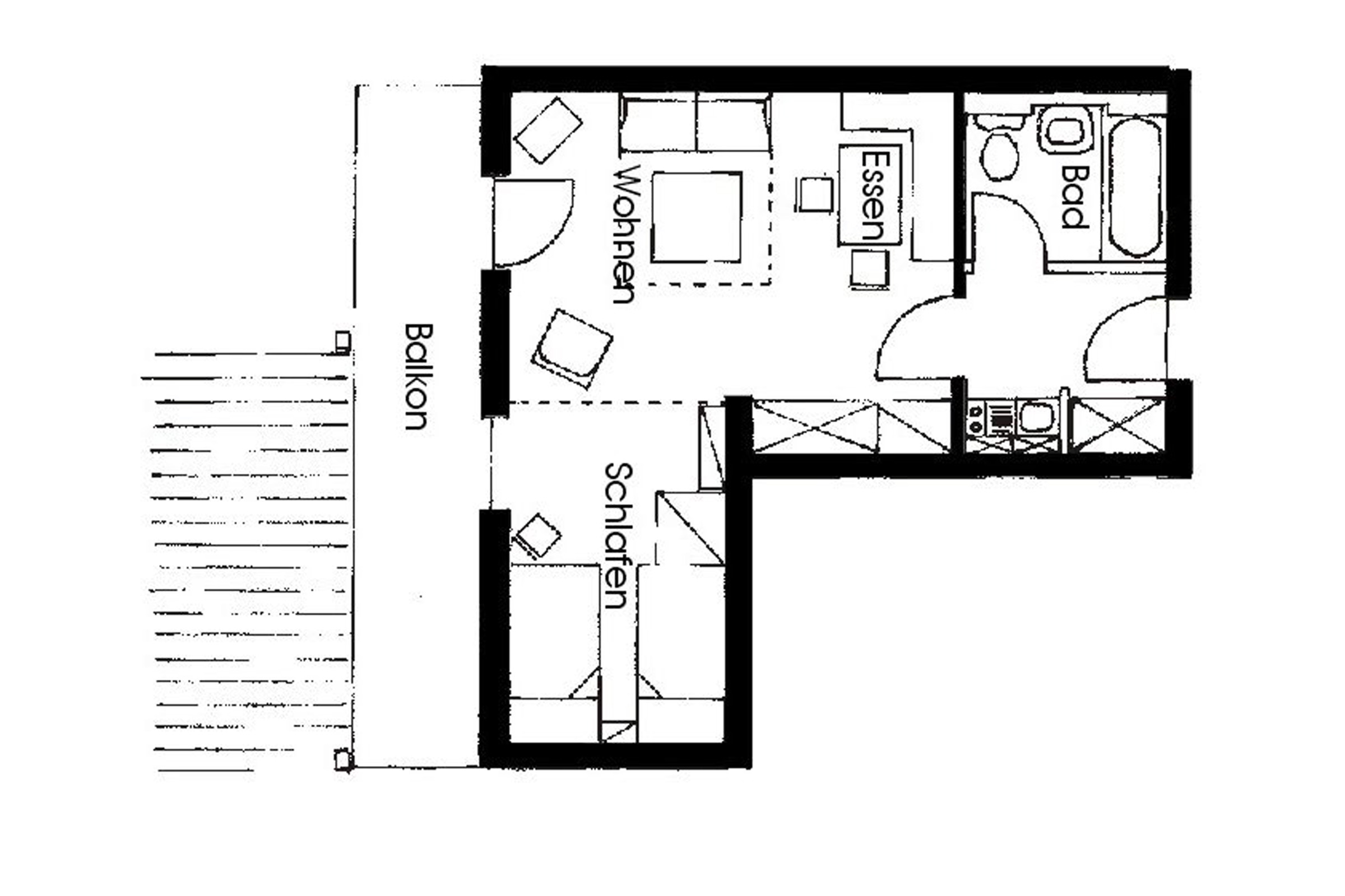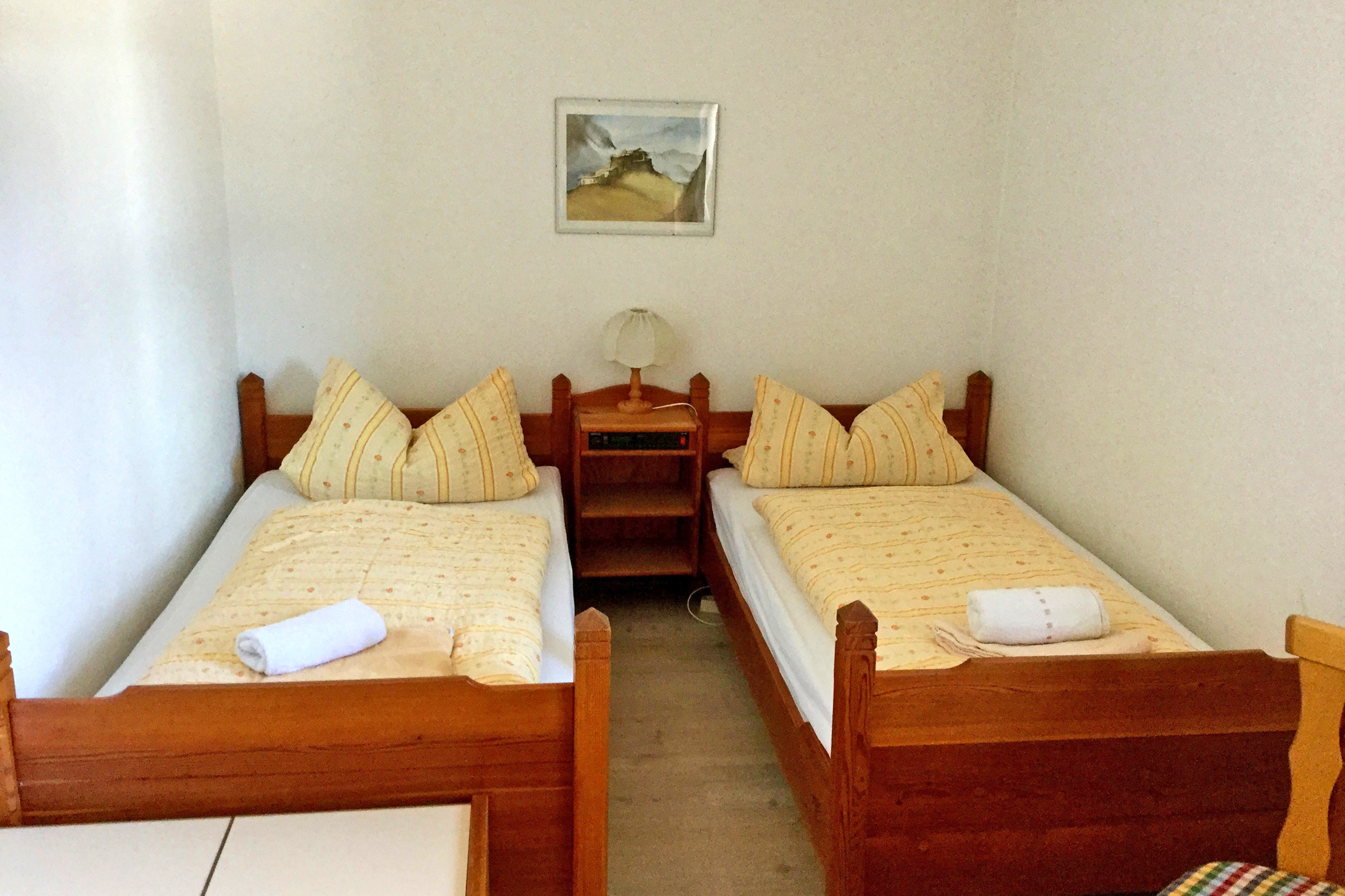 Helle Nichtraucher 1-Raum-Ferienwohnung 38 qm im 1. Obergeschoss mit Balkon und Bergblick, Wohn- und Schlafbereich kann durch eine Faltwand abgetrennt werden, Schlafraum mit zwei getrennten Betten, Wohnraum mit ausziehbarer Schlafcouch, Essecke, Telefon, kostenloses WLAN und Flat-SAT-TV, Küchenzeile, Badezimmer mit Dusch-/Badewanne und WC. Liegewiese am Haus für alle nutzbar. Ein Hund darf gegen Aufpreis gerne mitgebracht werden.